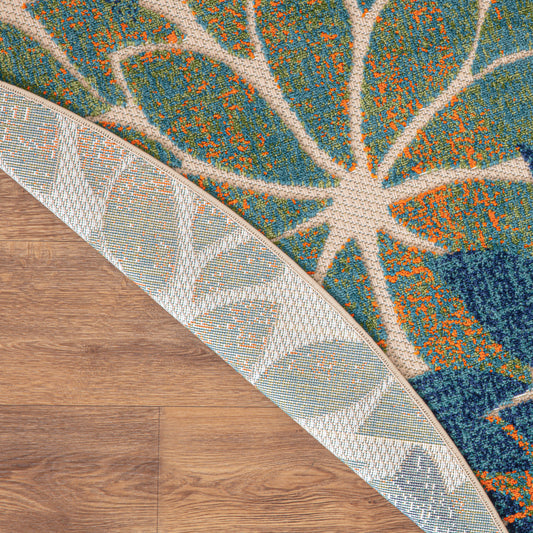 Nourison Aloha 5'3" x Round Blue Green Tropical Rug