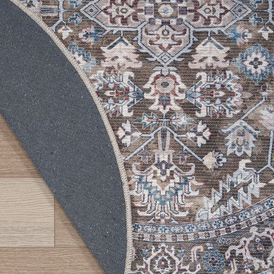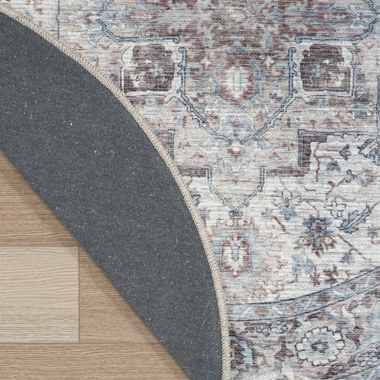 Nicole Curtis Machine Washable Series 1 5'3" x Round Blue Multicolor Vintage Indoor Rug