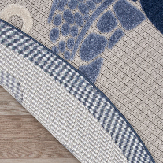 Nourison Aloha 7'10" x Round Navy Multicolor Outdoor Rug