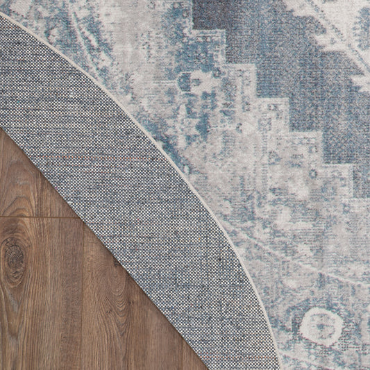 Nourison Astra Machine Washable 4' x Round Blue Ivory Vintage Indoor Rug