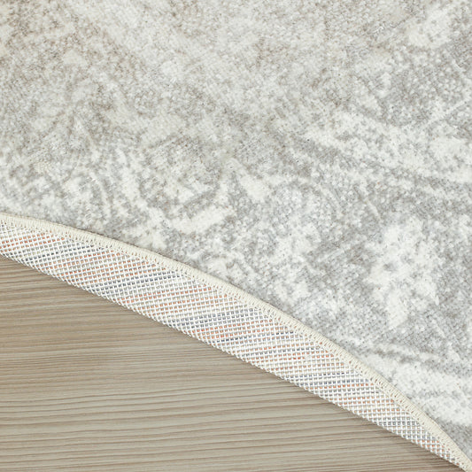 Nourison Astra Machine Washable 5'3" x Round Light Grey Vintage Indoor Rug