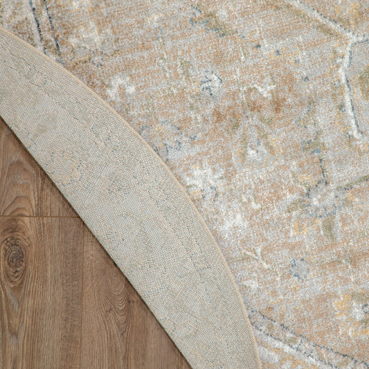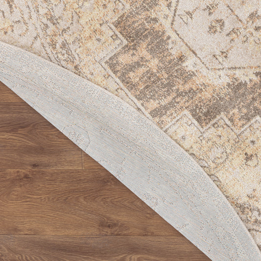 Nourison Astra Machine Washable 5'3" x Round Beige Vintage Indoor Rug