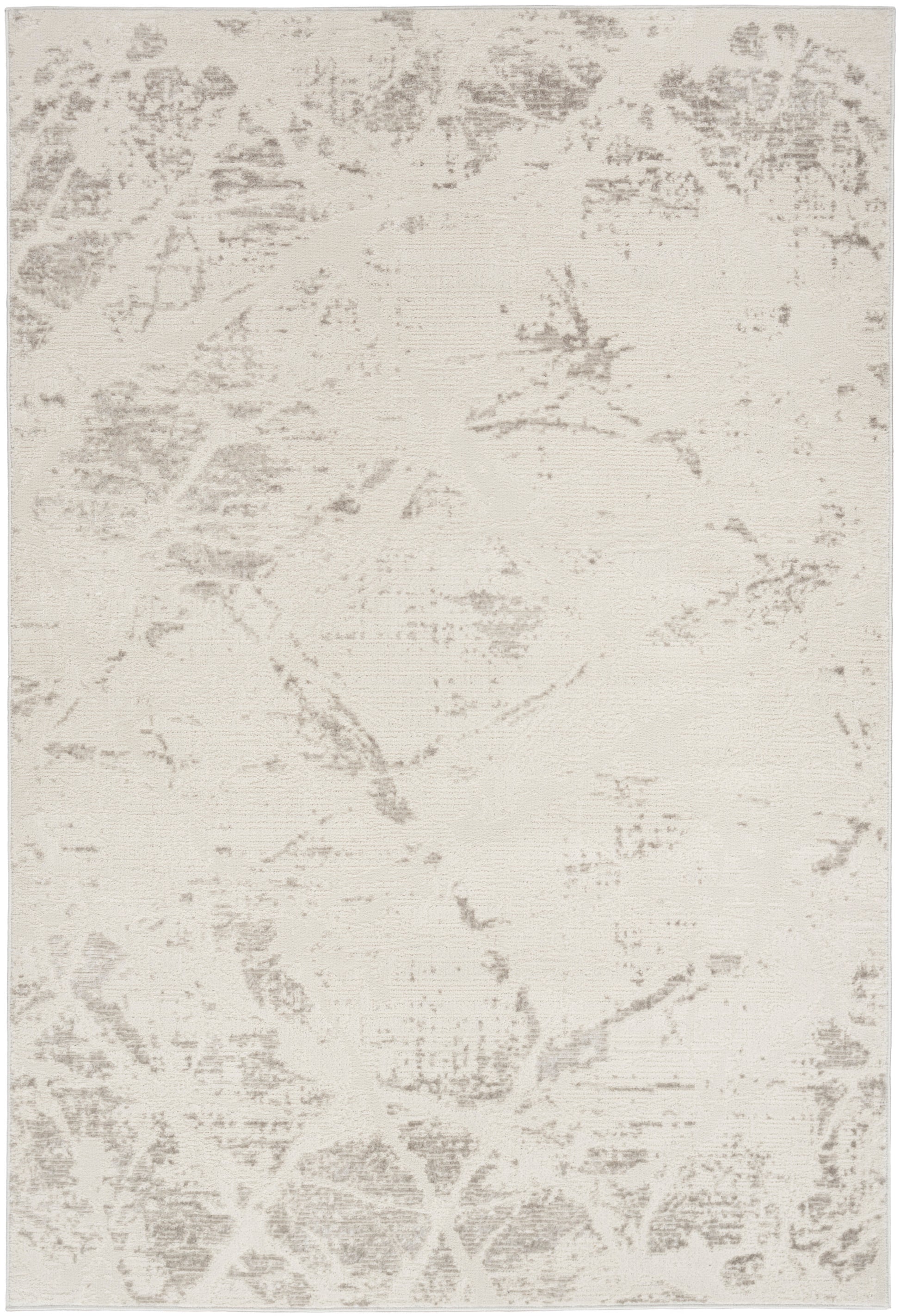 This abstract rug from the Calvin Klein Captivating Collection blends industrial design with a soft, vintage-inspired patina. With a high-low pile that adds texture, this sophisticated cream and grey rug adds comfort and dimension. Machine-made from a blend of polyester and polypropylene yarns finished with a luxurious sheen.