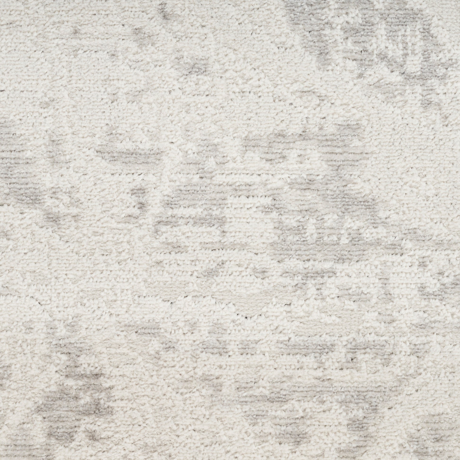 This abstract rug from the Calvin Klein Captivating Collection blends industrial design with a soft, vintage-inspired patina. With a high-low pile that adds texture, this sophisticated cream and grey rug adds comfort and dimension. Machine-made from a blend of polyester and polypropylene yarns finished with a luxurious sheen.