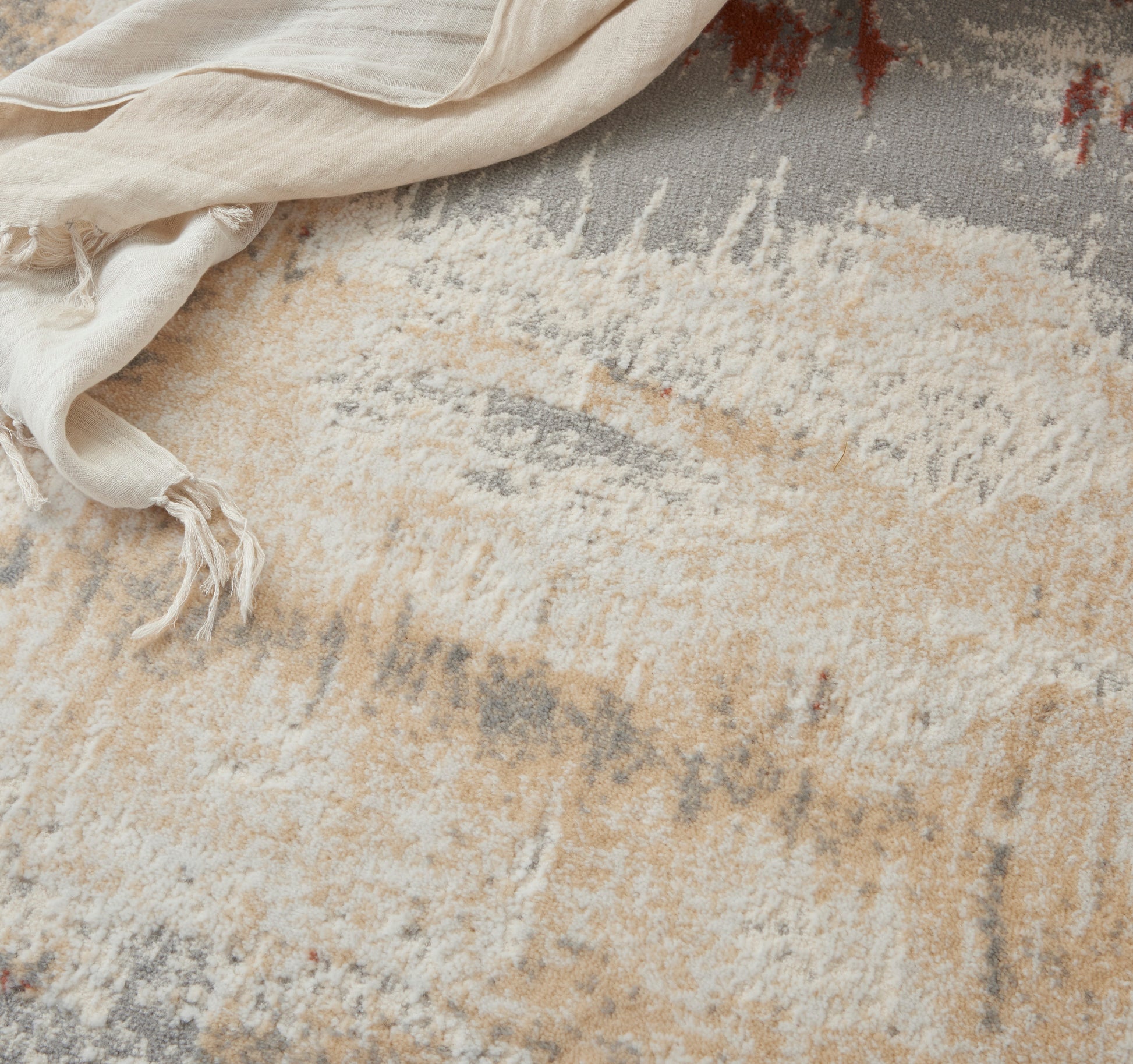 An artist’s touch. Abstract brush strokes are captured in the dynamic pattern of this Enchanting Collection area rug by Calvin Klein. With its soft, high-low cut pile, this modern design offers visual and tactile appeal. A contemporary classic in a versatile grey and rust palette.