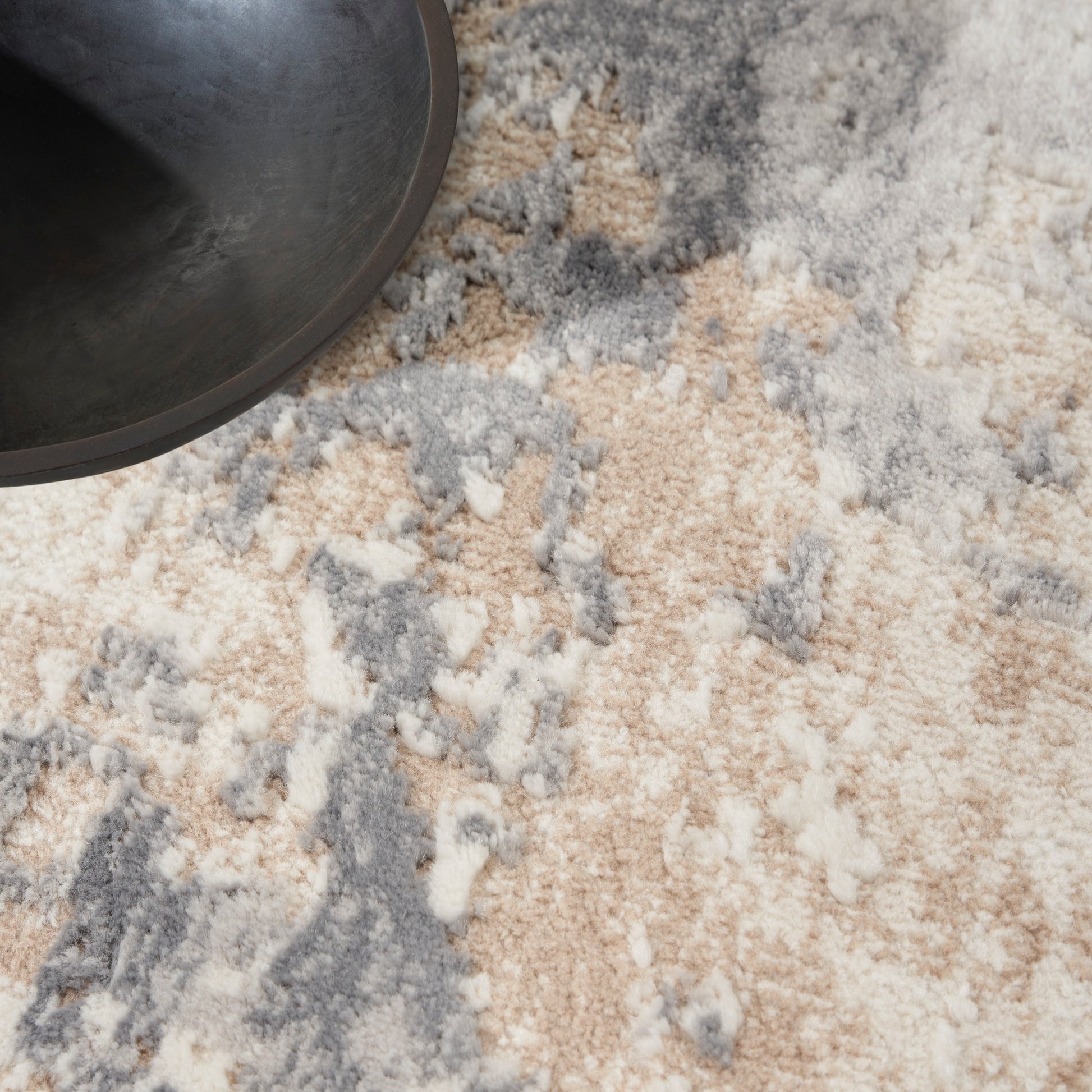 Abstract brush strokes create dynamic style with this grey and ivory Calvin Klein Enchanting Collection rug. The dappled abstract pattern invites a relaxed feel to the modern home. Machine-made for easy care in a blend of polyester and polypropylene, enhanced by a texturally pleasing high-low cut pile.