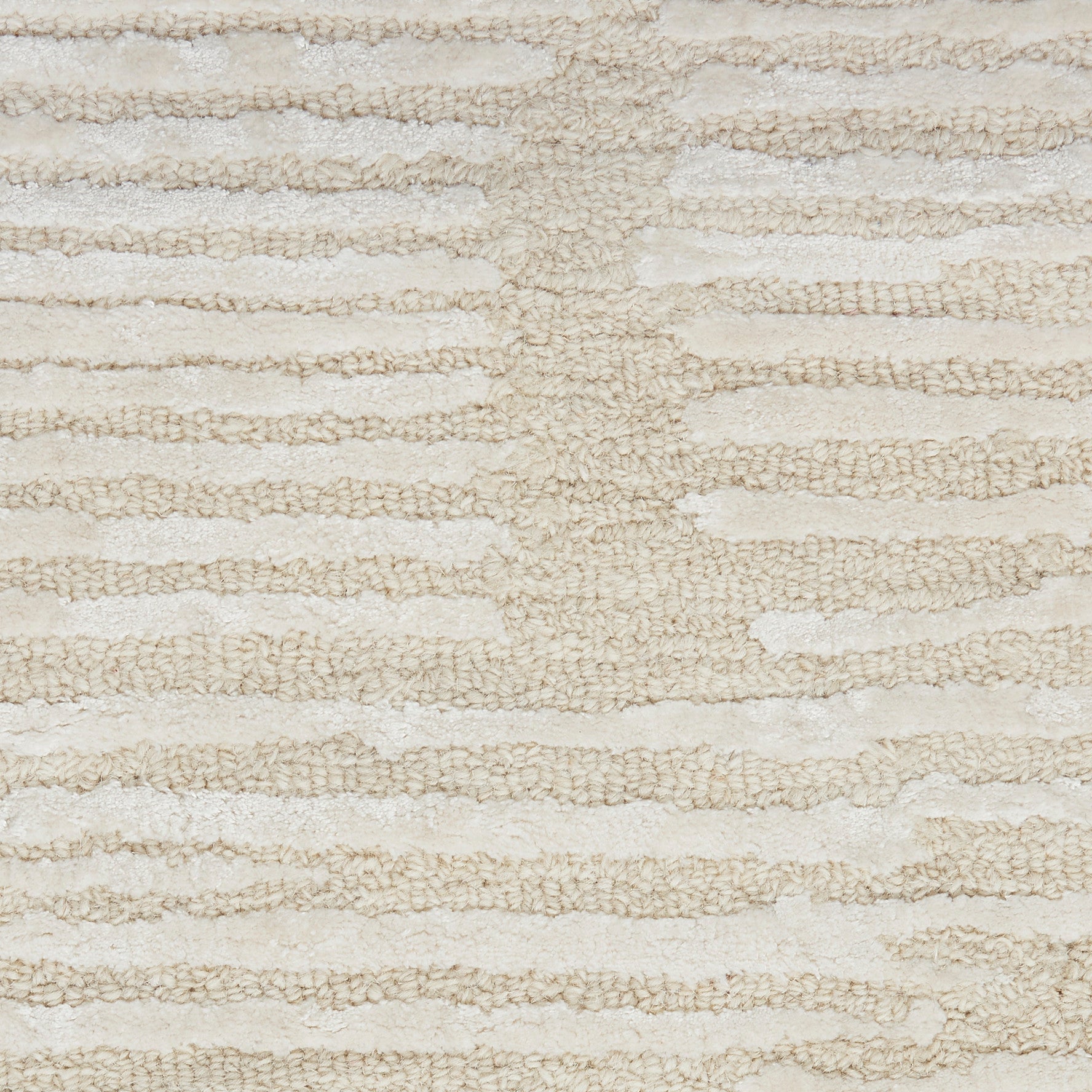 Textured, abstract, linear. This modern and neutral ivory rug from the Calvin Klein Linear Collection infuses distinctive energy into your space. Handmade from a blend of wool and silky Luxcelle in a high-low, cut and loop pile for added dimension.