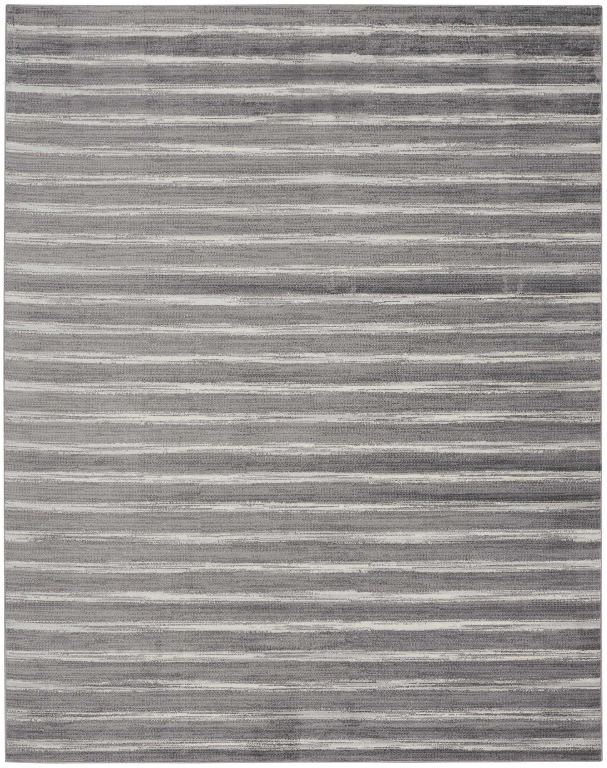 This geometric rug from the Calvin Klein Verdant Collection delivers subtle sophistication through its broken stripe pattern and space-dyed tonal variations. Machine-made of soft, easy-clean polyester.