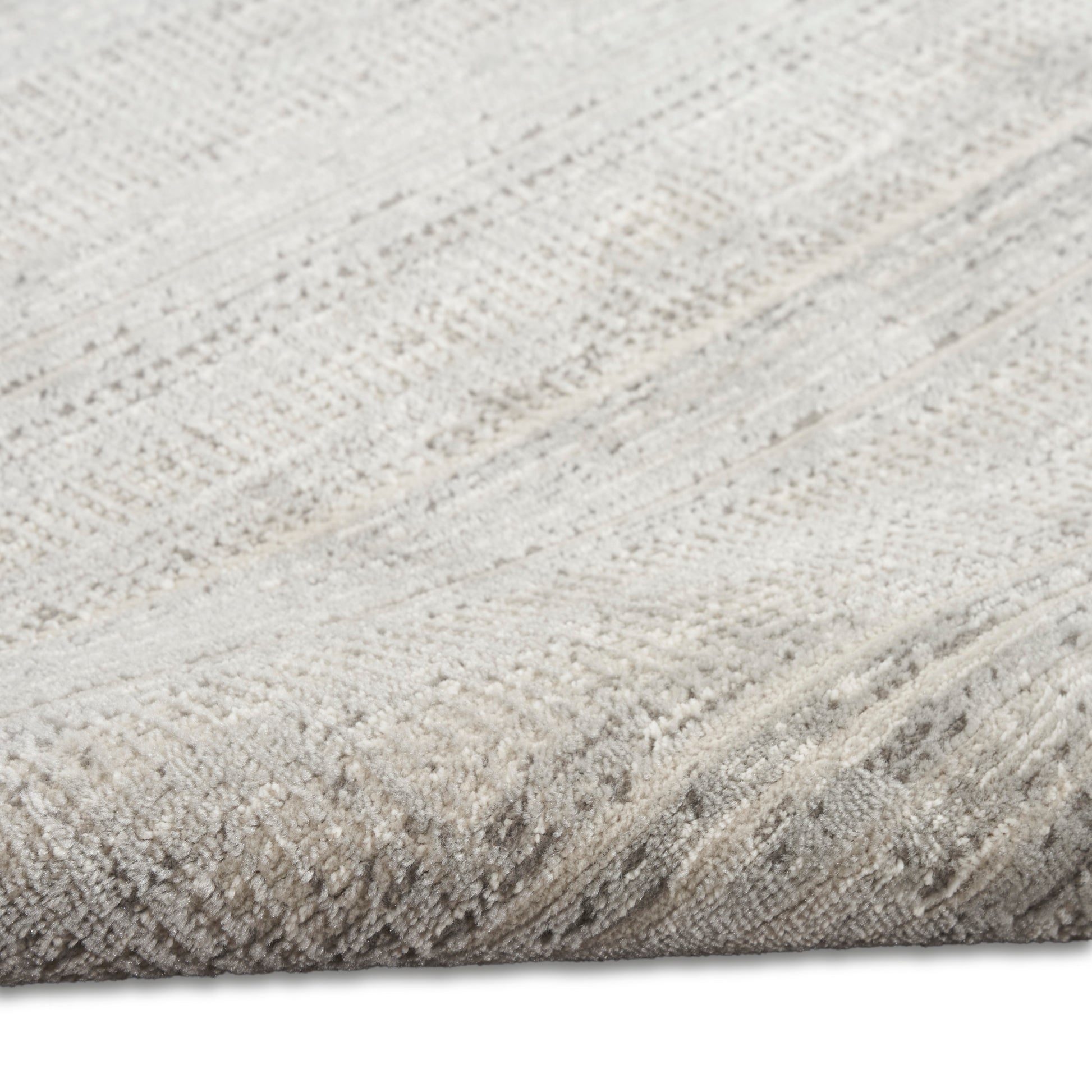 This light grey geometric rug from the Calvin Klein Verdant Collection imparts cool modernist style. Intricate layers of color and pattern add depth and dimension. Designed for the modern lifestyle in an easy-clean, machine-made polyester pile.