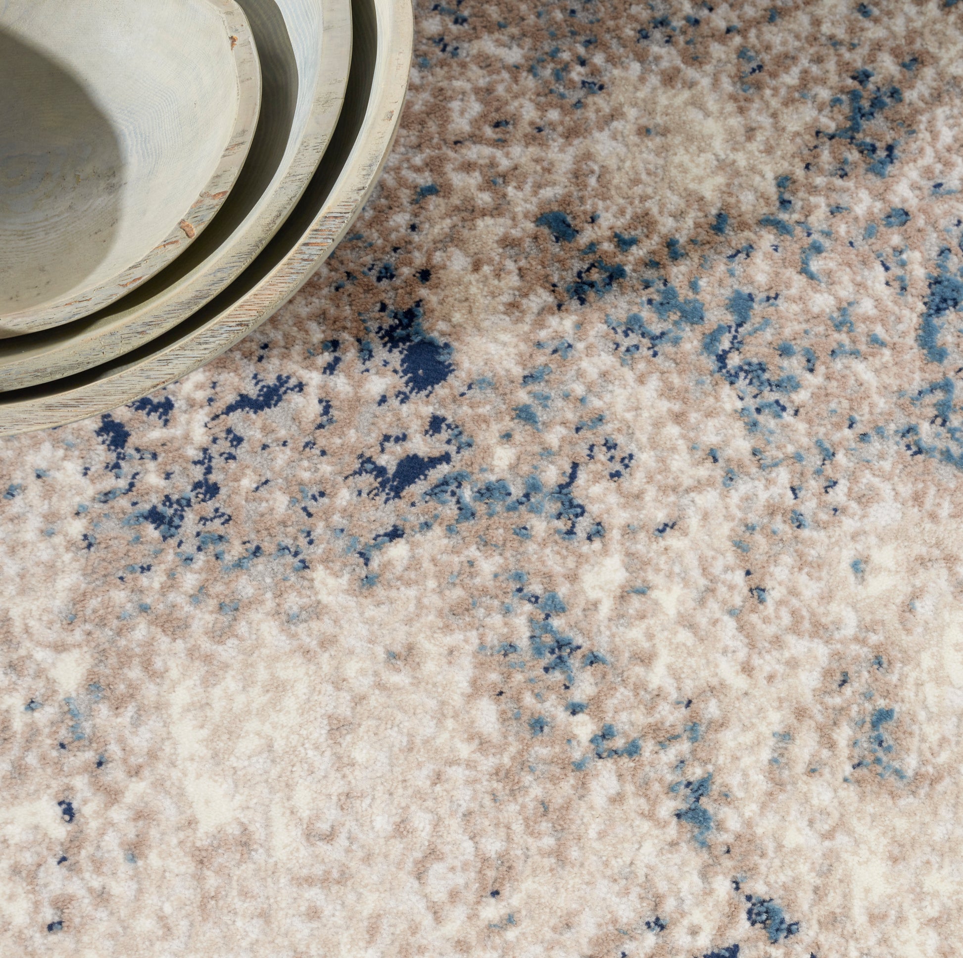 Feel at ease. Soothing pools of color create a relaxed vibe with this abstract rug from the Calvin Klein Infinity collection. Featuring a soft and inviting texture in neutral grey, blue, and ivory. Machine-made for lasting style from softly textured, easy-clean fibers.