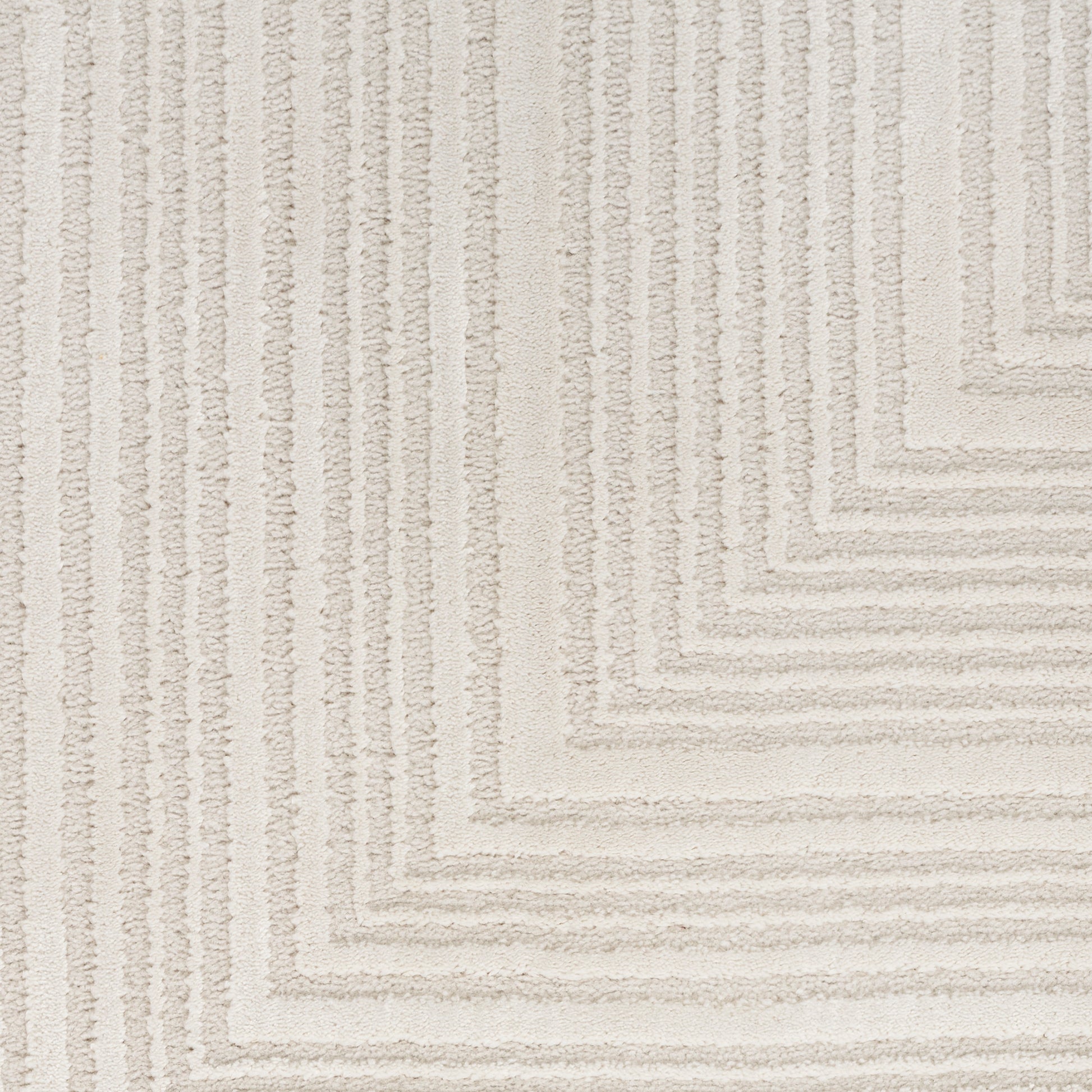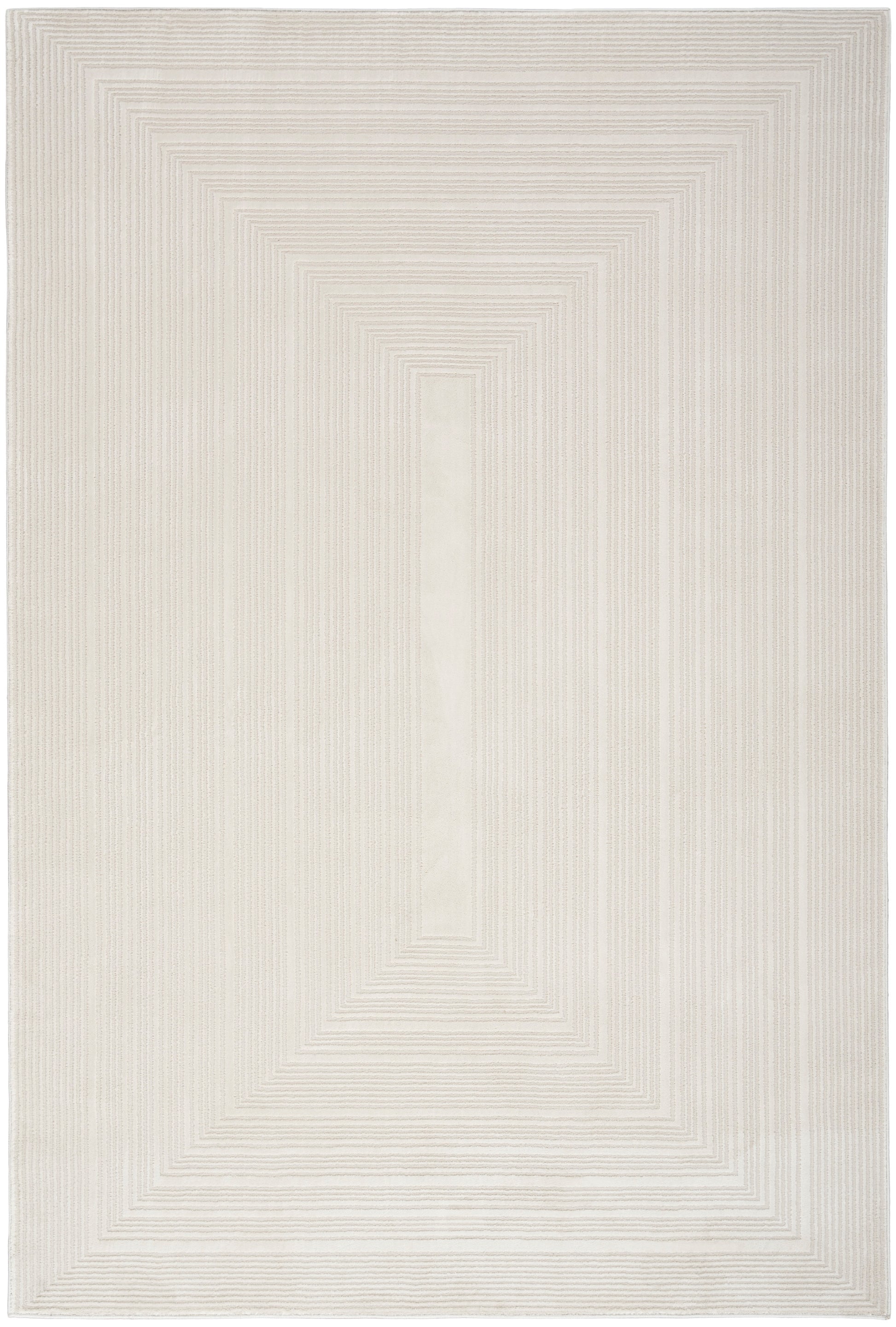 Refresh your space with the chic style of this geometric rug from the Calvin Klein Irradiant Collection. The modern design features concentric rectangles in ivory with raised accents and a sheen that adds visual depth. Machine-made from softly textured polyester yarns.
