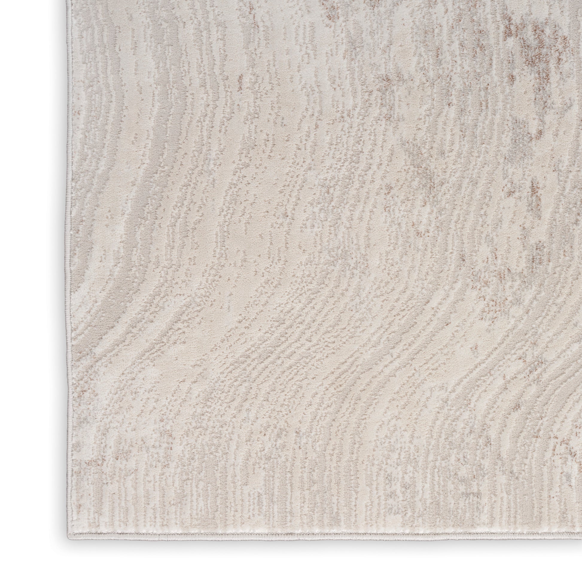 Infuse quiet energy into your space with this abstract rug from the Calvin Klein Irradiant Collection. The raised ripple pattern in shimmering silver grey and tan adds visual interest to your living room or bedroom. Machine-made from durable, comfortably textured polyester.