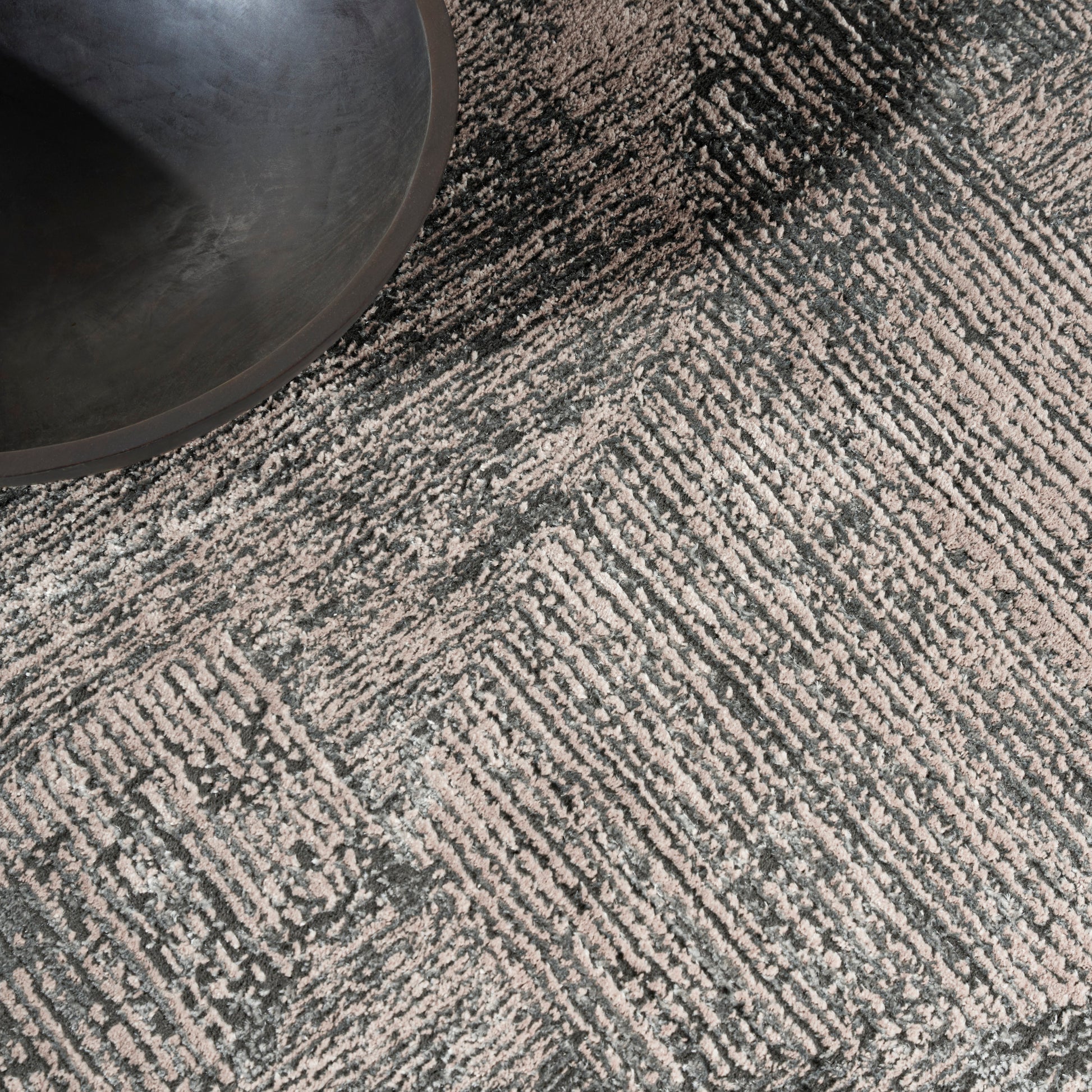 This abstract rug from the Calvin Klein Irradiant Collection brings minimalist energy to your home. An overlapping linear pattern, presented in silver grey tones, is enhanced by subtle texture variations and a vivid sheen. Machine-made from polyester for modern living.