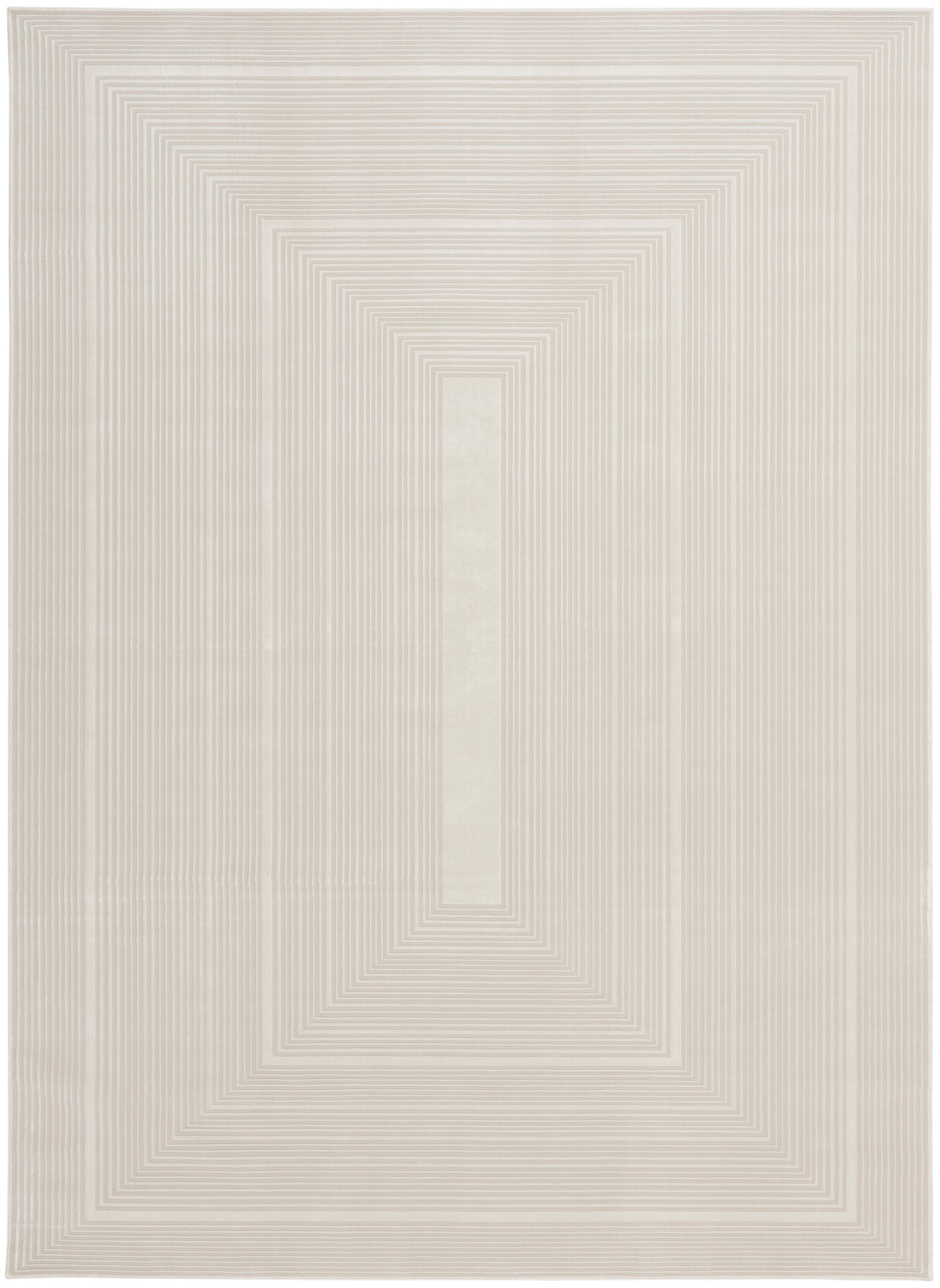 Refresh your space with the chic style of this geometric rug from the Calvin Klein Irradiant Collection. The modern design features concentric rectangles in ivory with raised accents and a sheen that adds visual depth. Machine-made from softly textured polyester yarns.