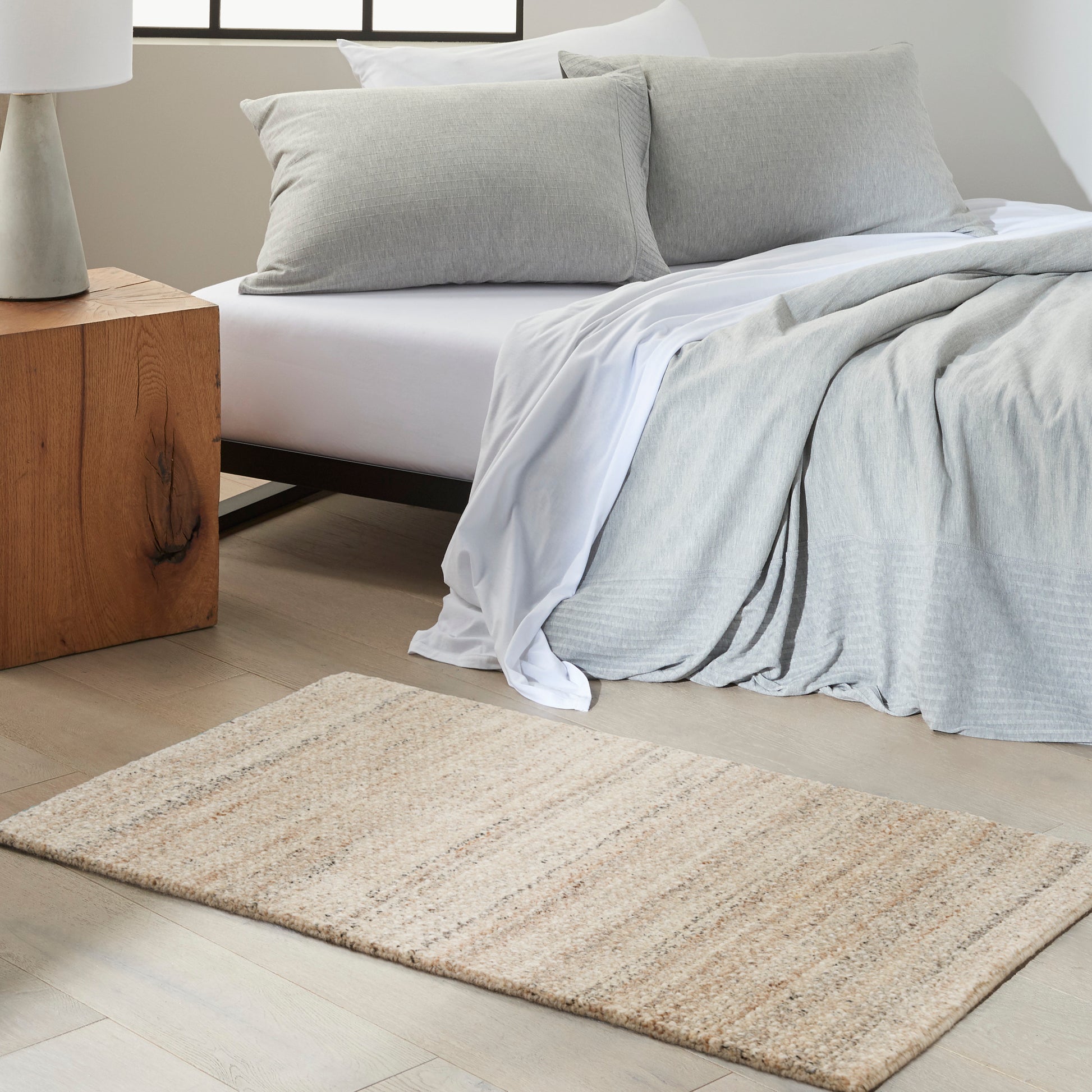 Luxurious, understated style. This abstract rug from the Calvin Klein Abrash Collection brings subtle movement and texture to the modern home. Made from fine wool reinforced with rayon fibers in beige, ivory, and grey, with space-dyed tonal variations that add visual appeal.
