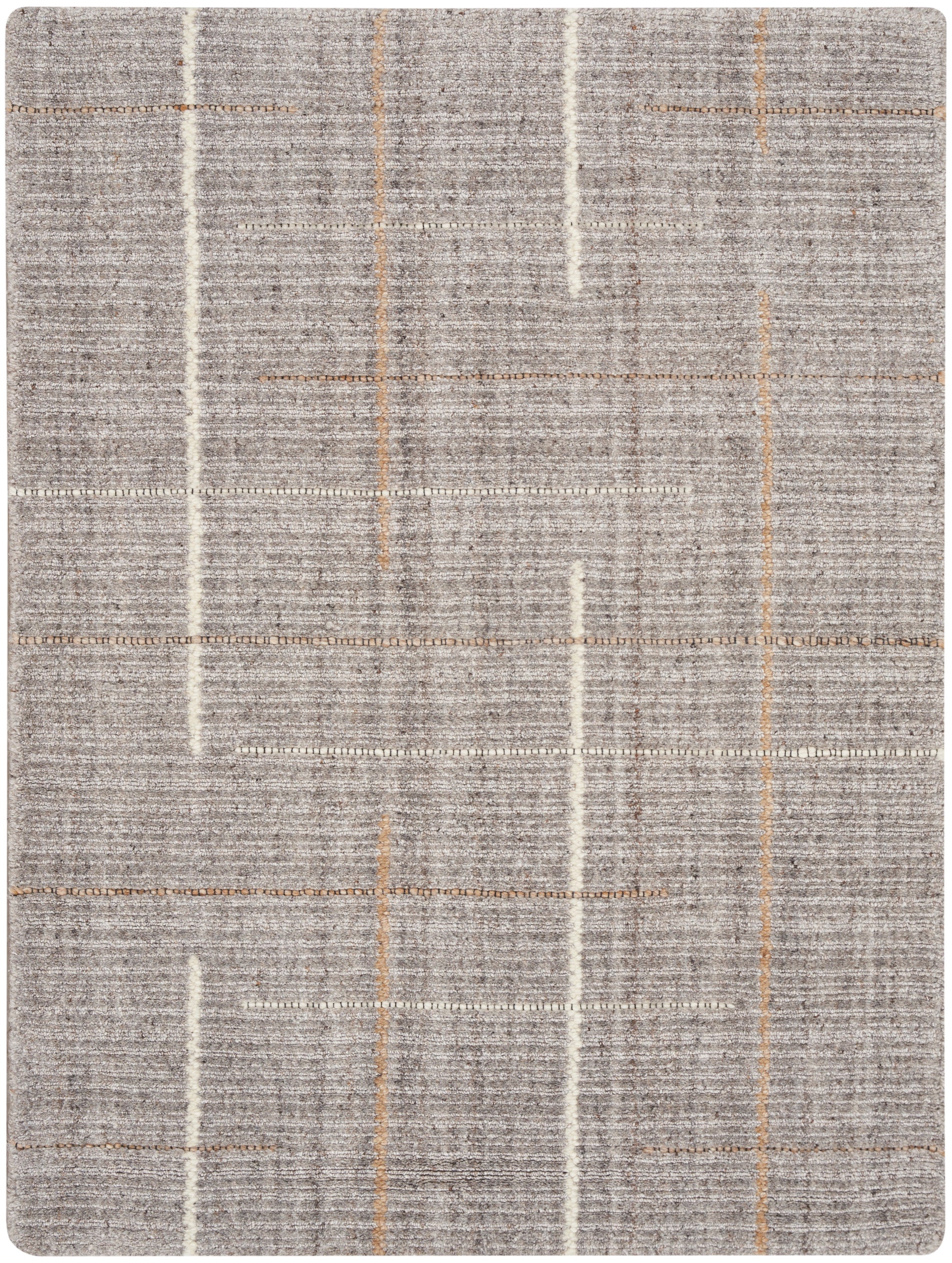 Add chic, cosmopolitan style to your space with this grey Calvin Klein Architectura rug. An interplay of woven stripes, intersecting lines, and space-dyed colors creates a mesmerizing centerpiece for any décor. Handmade from a blend of naturally renewable wool and rayon with a multi-textured finish.