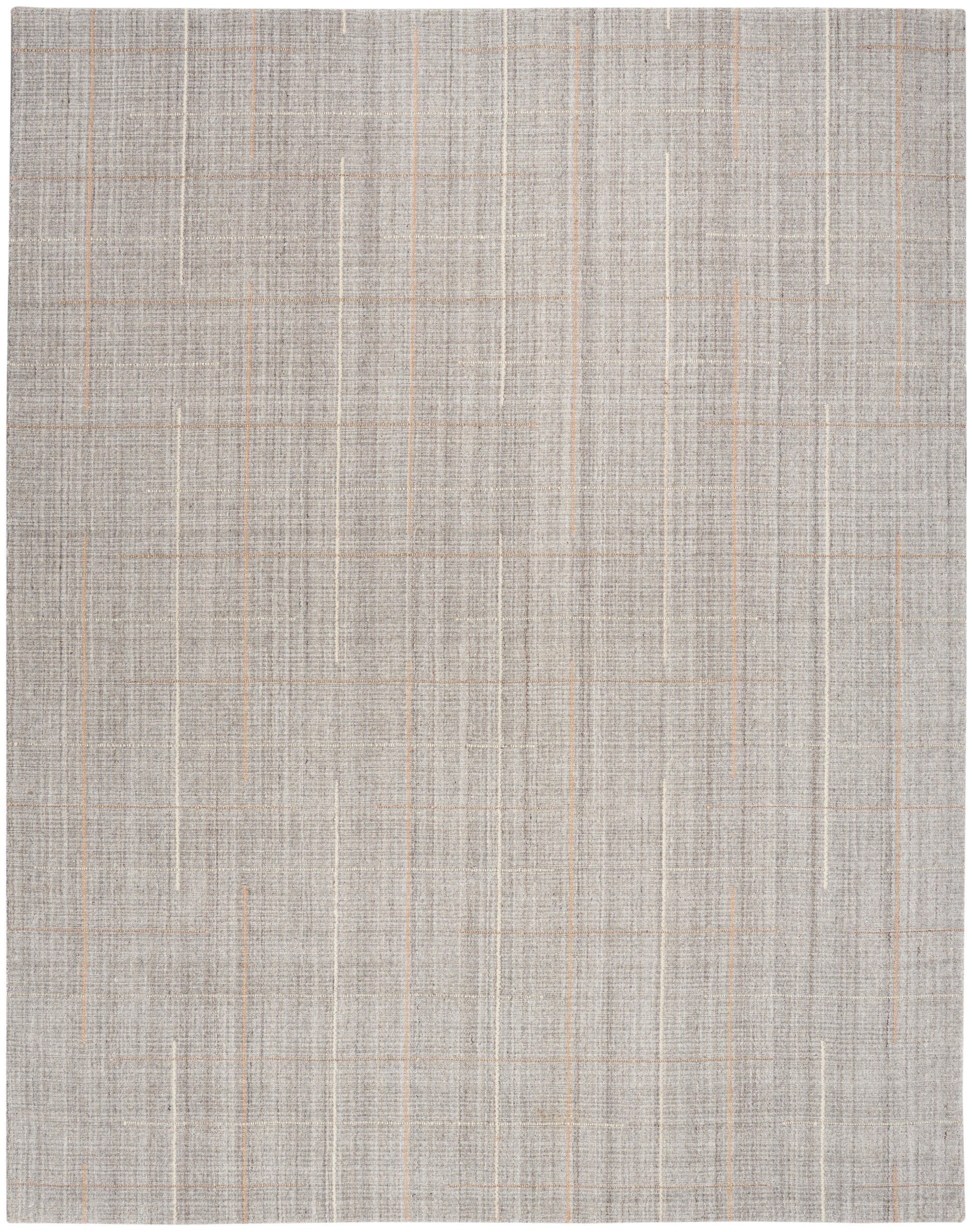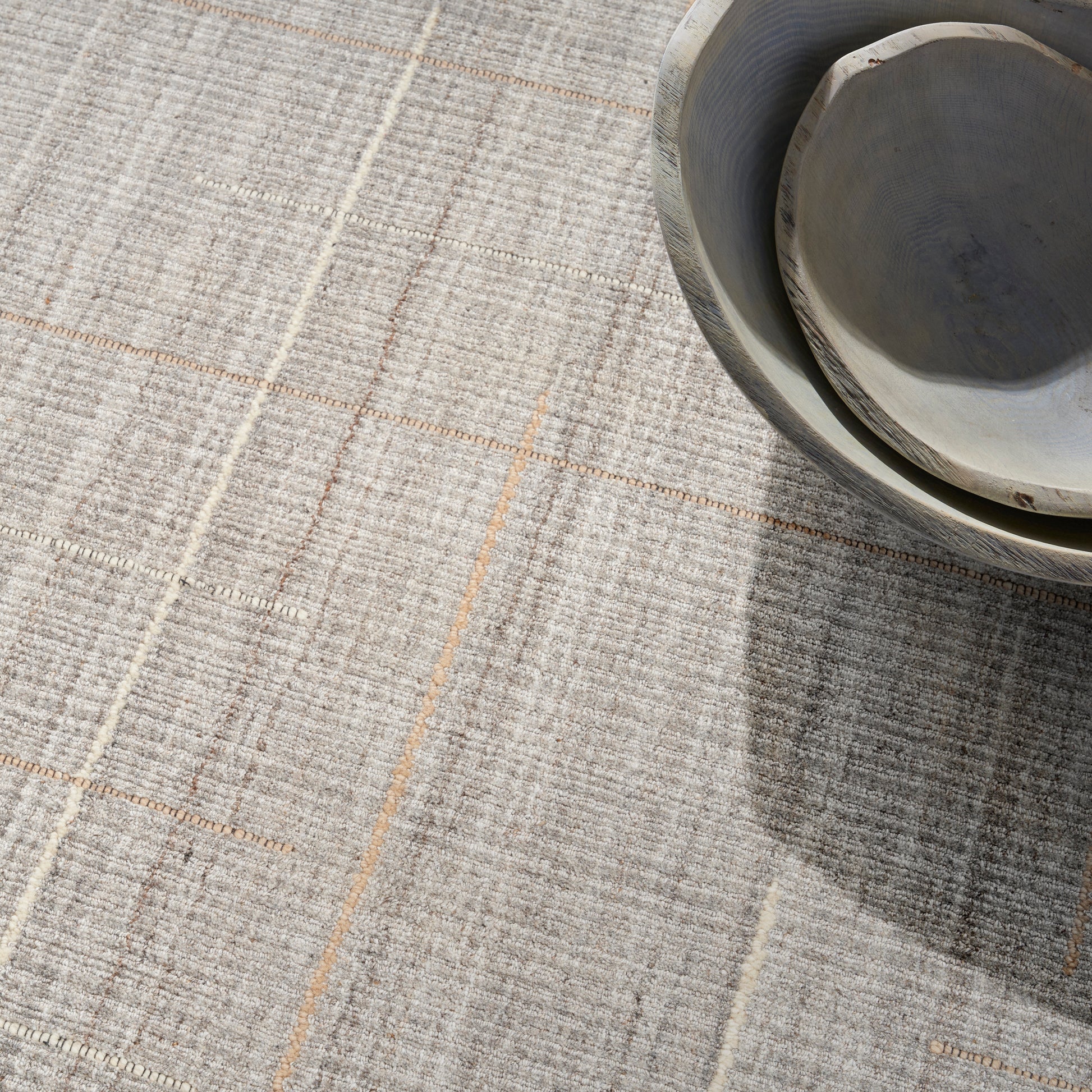 Add chic, cosmopolitan style to your space with this grey Calvin Klein Architectura rug. An interplay of woven stripes, intersecting lines, and space-dyed colors creates a mesmerizing centerpiece for any décor. Handmade from a blend of naturally renewable wool and rayon with a multi-textured finish.