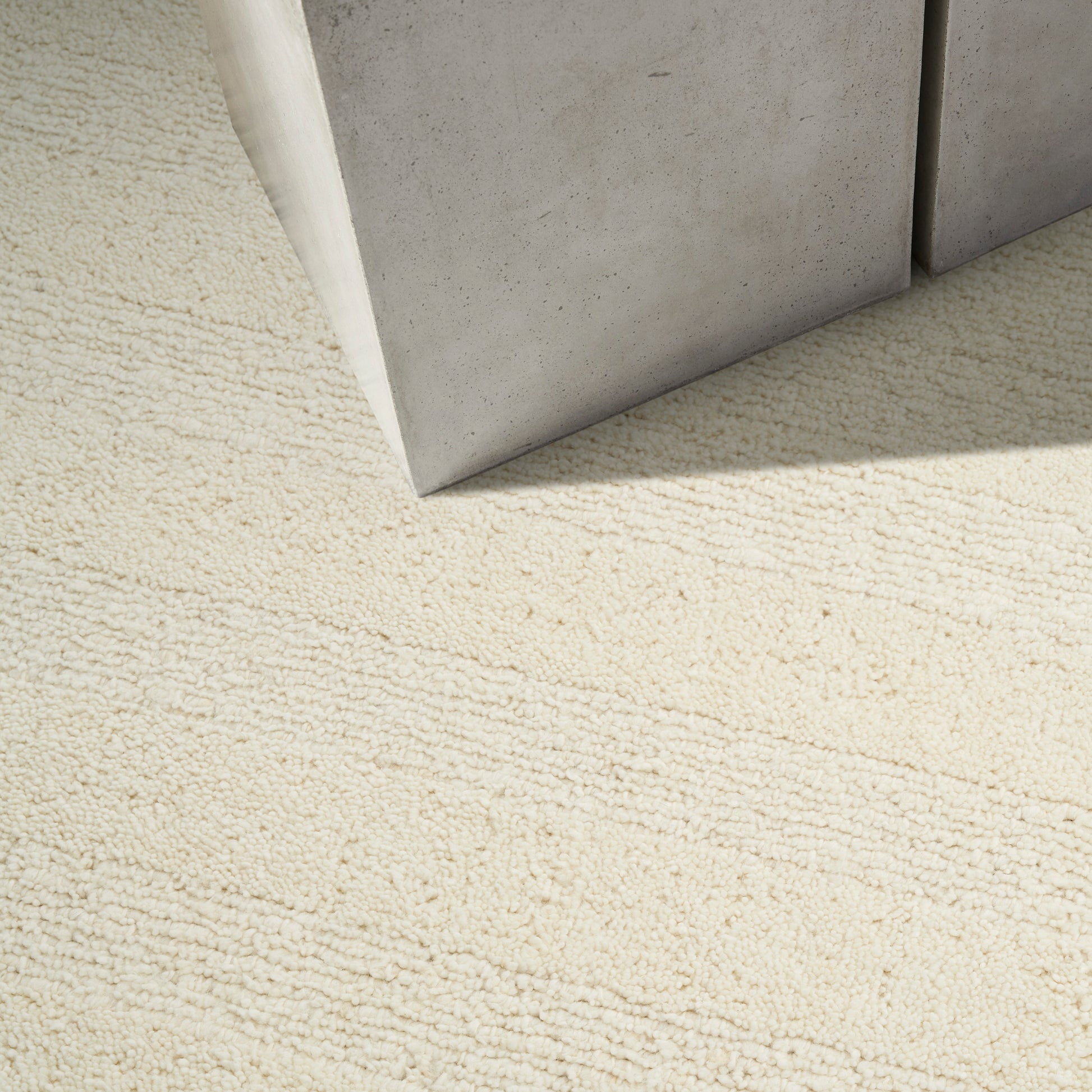 This ivory rug from the Calvin Klein Spun Collection adds casual style with a refined edge. The subtly striped pattern blends texture and visual interest through space-dyed tonal variations. Made from the finest New Zealand wool.