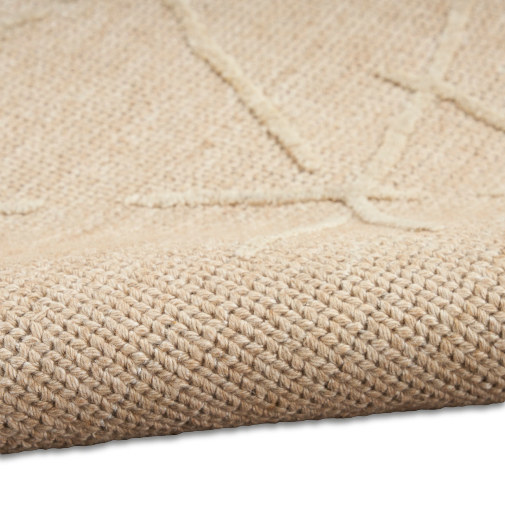Ground any space in the sophisticated style of this natural beige Calvin Klein Wander rug. Overlapping raised lines create depth, while a space-dyed ground adds a rhythmic tonal effect. Handmade from a blend of wool and rayon.