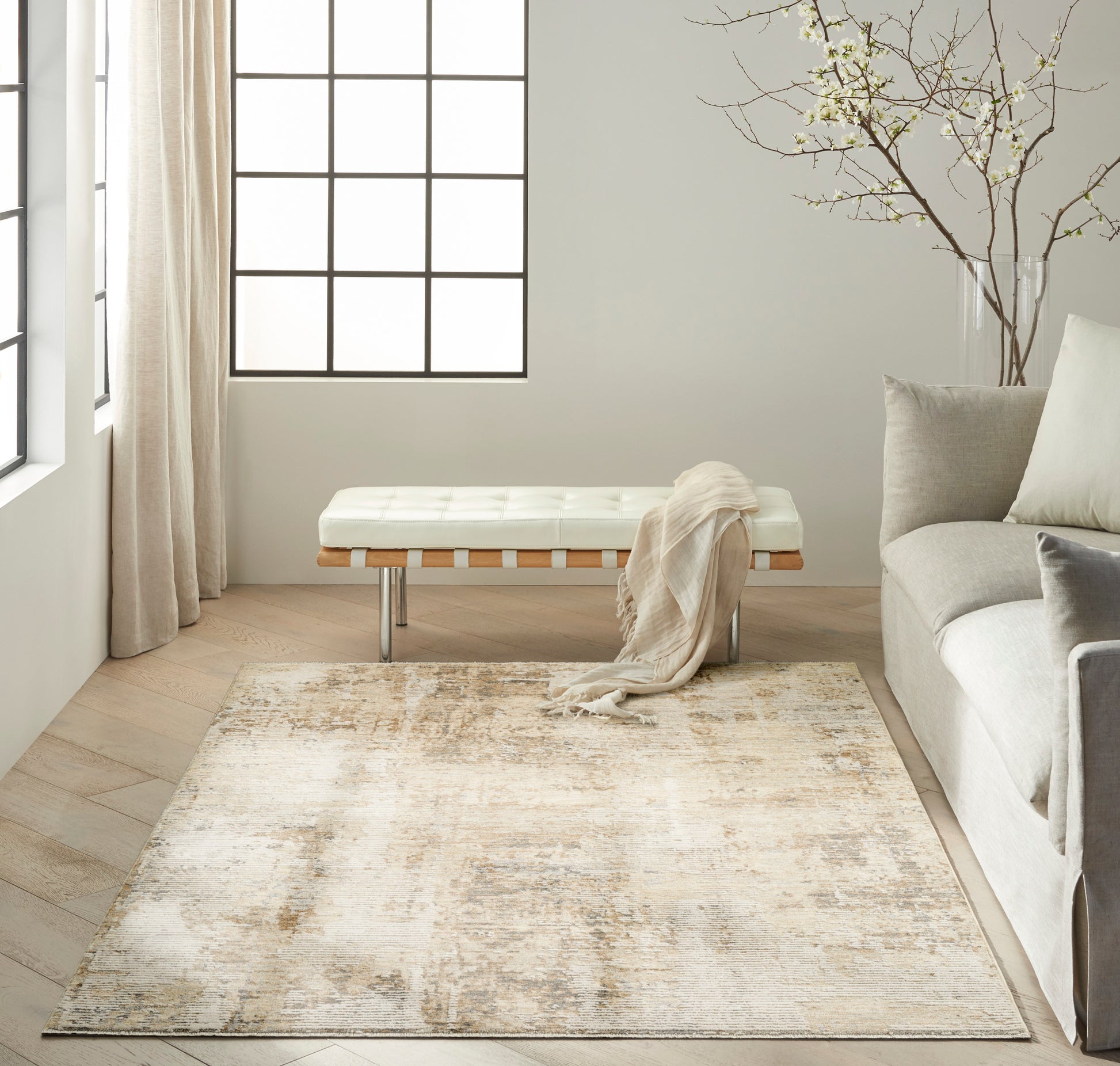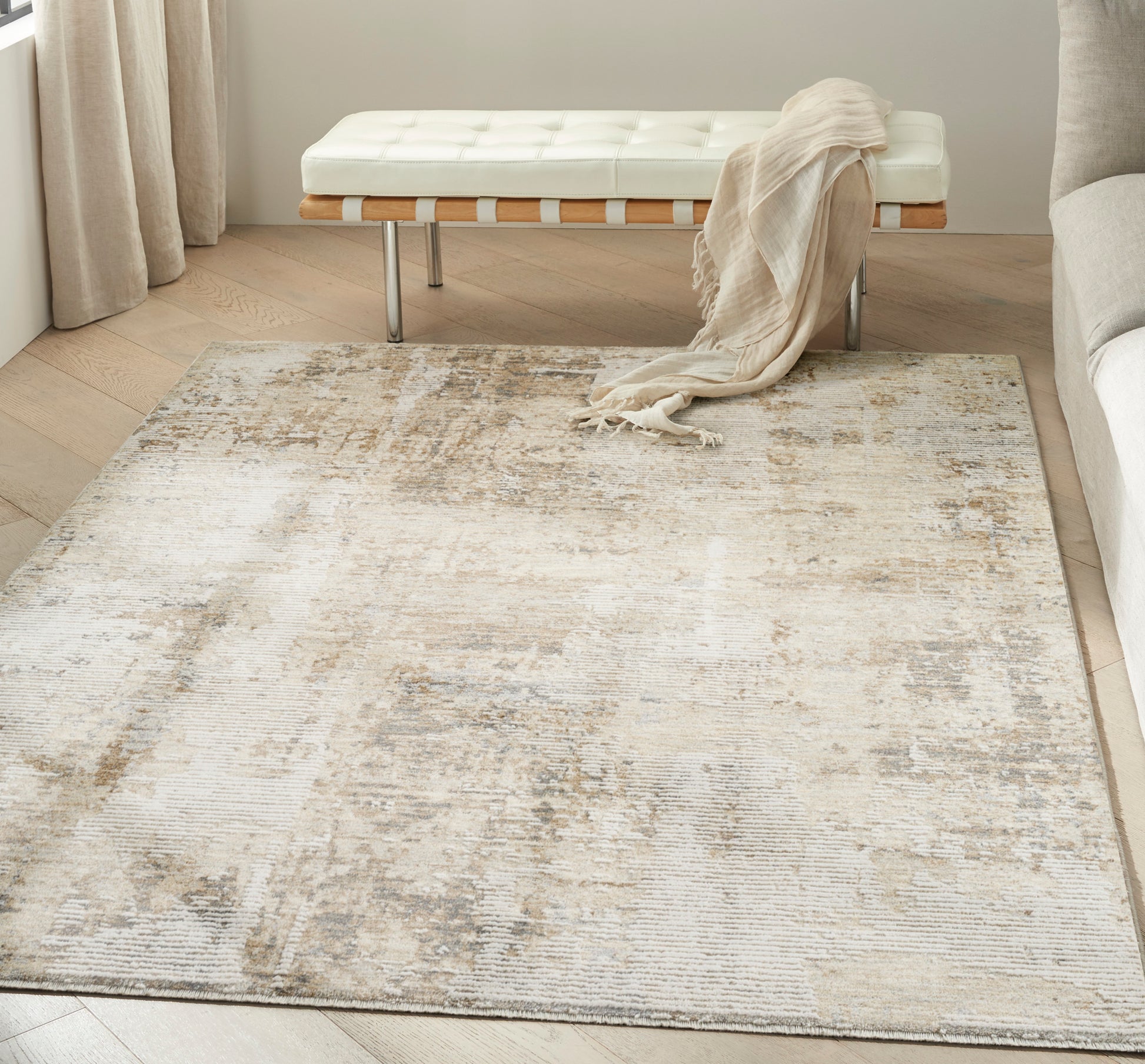Ground your space in effortless sophistication with this abstract rug from the Calvin Klein Summit collection. The neutral palette adds a warm and inviting feel, which is enhanced by a subtly raised texture for added dimension. Machine-made with a low-profile construction that’s easy to clean.
