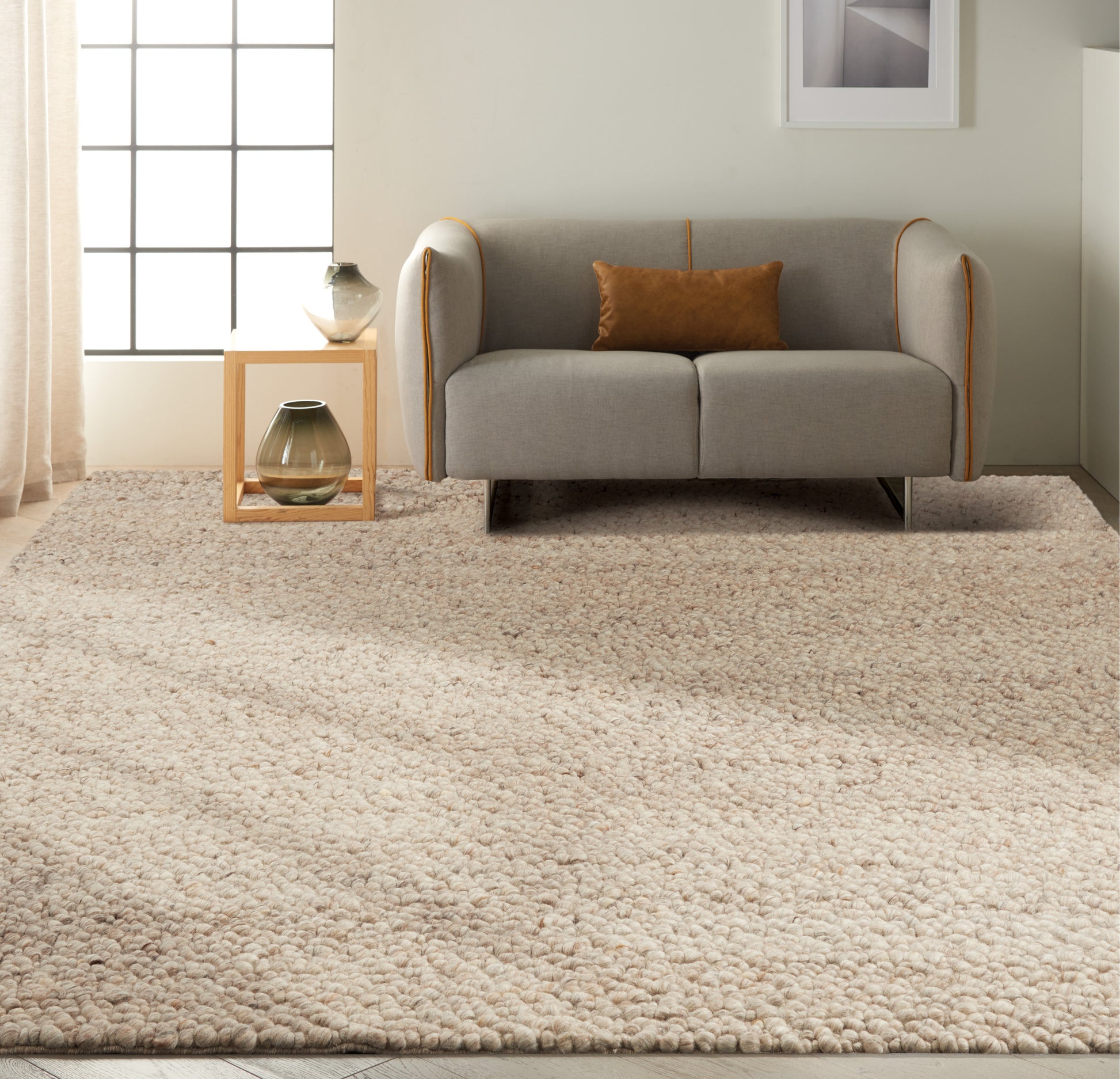 Traditional Berber weaving gets a contemporary upgrade in this large-loop area rug from the Calvin Klein Riverstone Collection. The uniquely thick pebble weave creates a beautiful look and feel, with delicious texture and tonal depth. Hand-woven wool, in warm mocha.