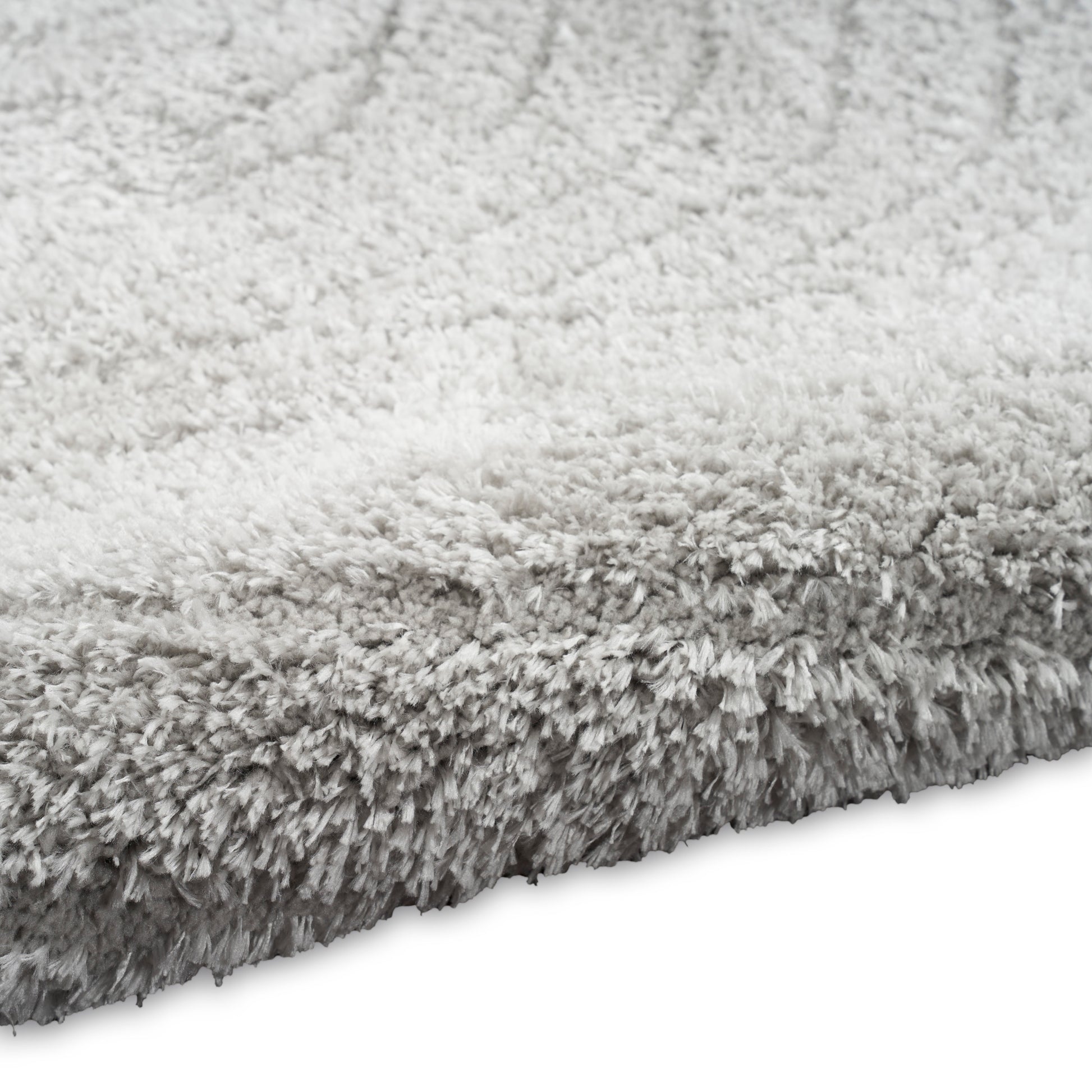 Warmth, comfort, and texture. The Calvin Klein Surfaces Collection shag rug presents an abstract linear pattern in tone-on-tone silver-grey that easily complements a variety of styles. Made with plush polyester yarns with a high-low finish and polished sheen.