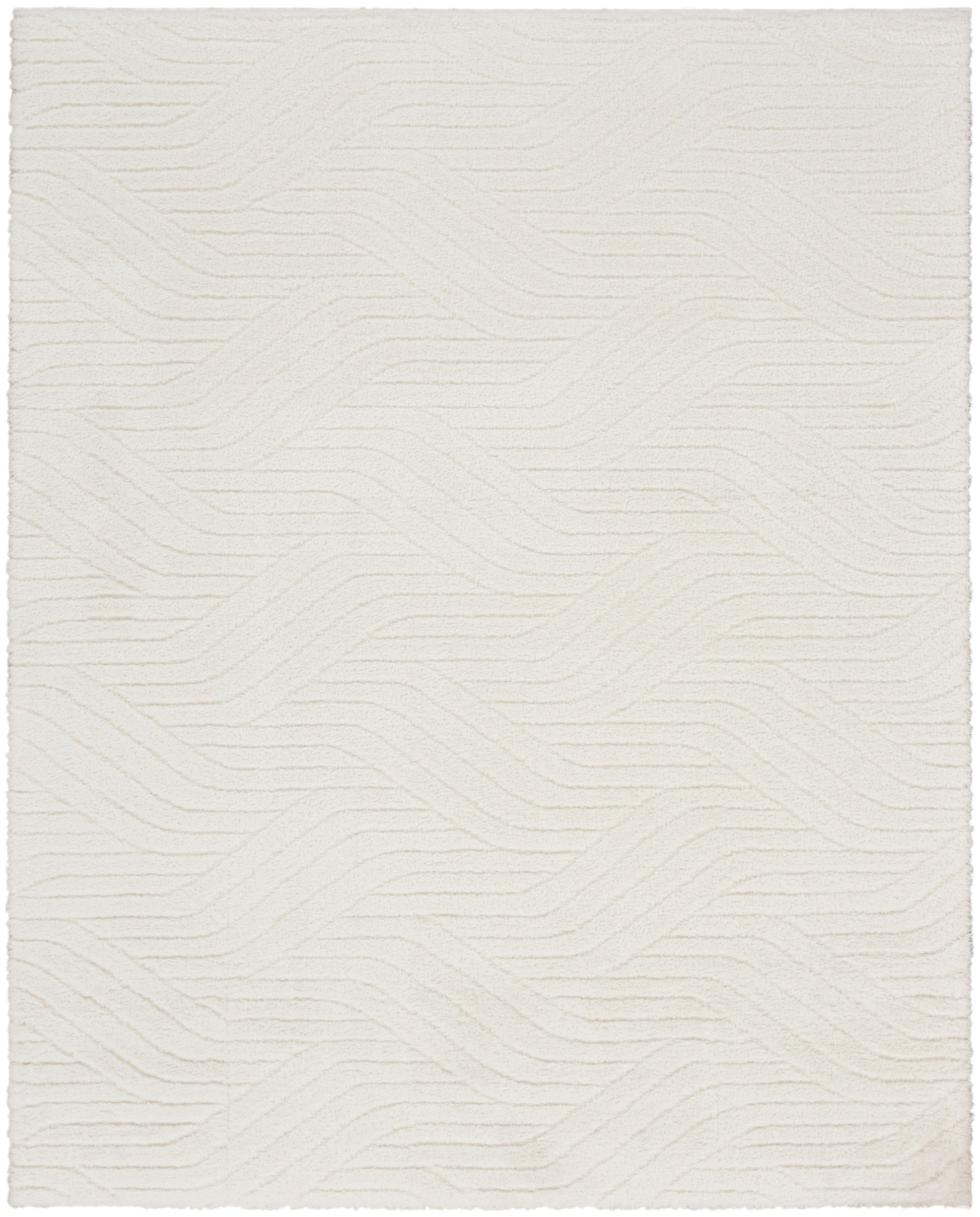 Warmth, comfort, and texture. The Calvin Klein Surfaces Collection shag rug presents an abstract linear pattern in tone-on-tone ivory that easily complements a variety of styles. Made with plush polyester yarns with a high-low finish and polished sheen.