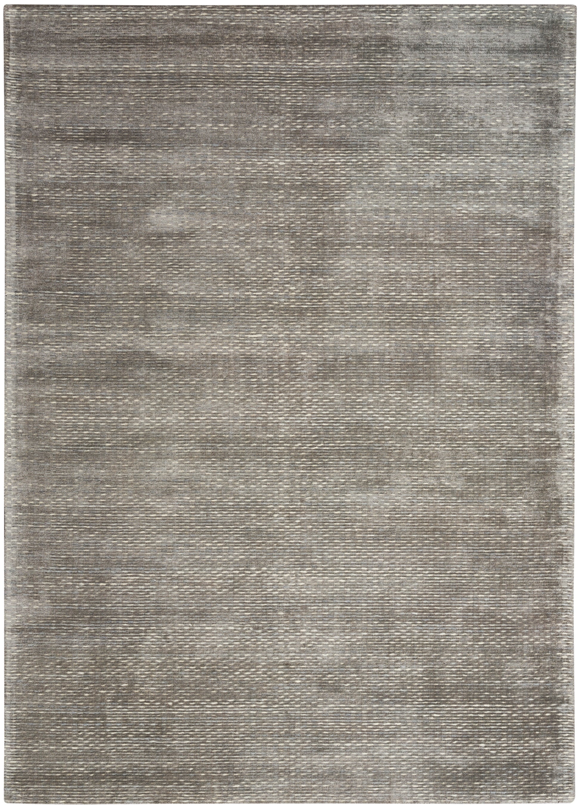 This modern grey rug from the Calvin Klein Valley Collection adds a simple yet striking look to any space. The silky-smooth pile is interwoven with banded high-low yarns that add a subtle sense of depth. Handmade with wool and viscose fibers that add a captivating sheen.