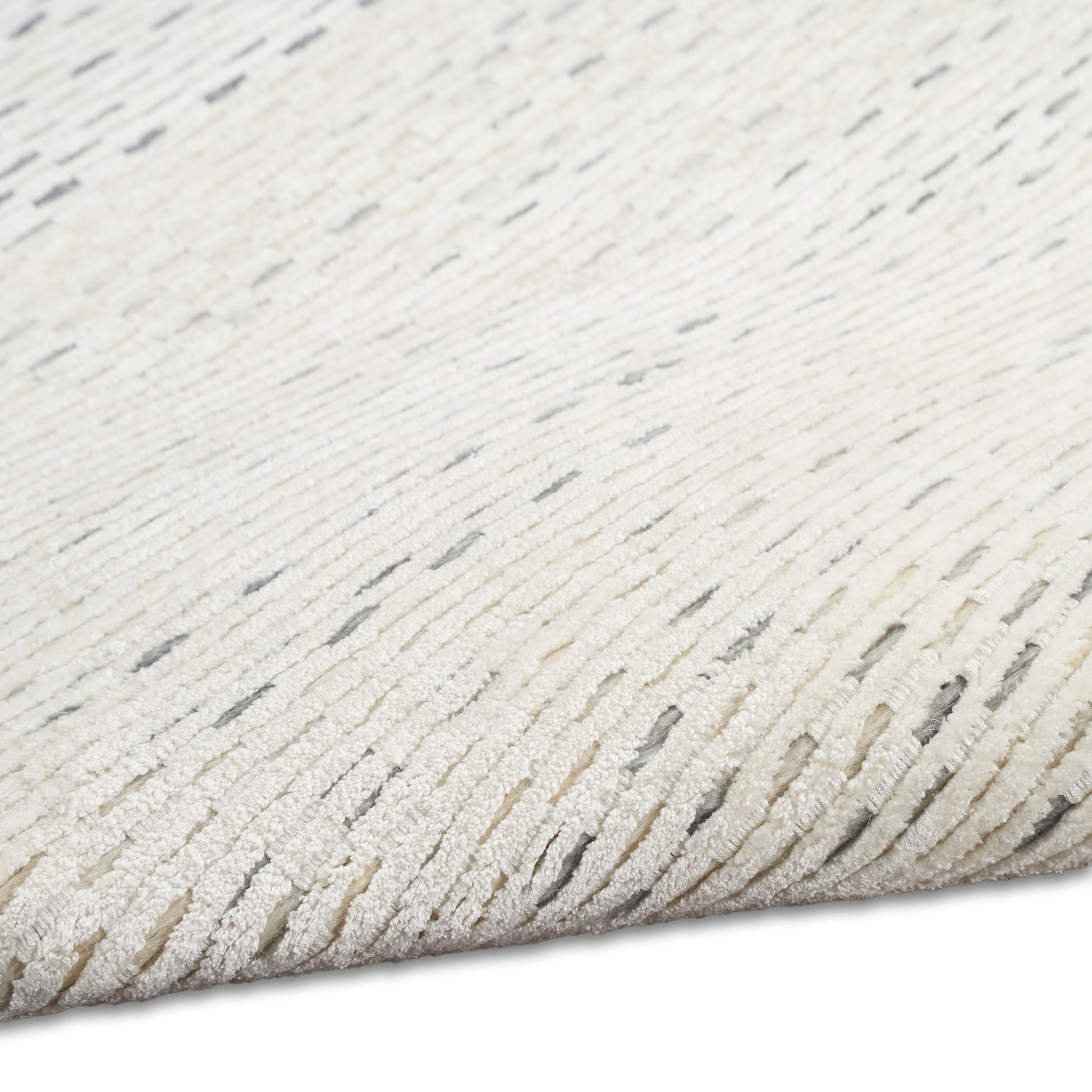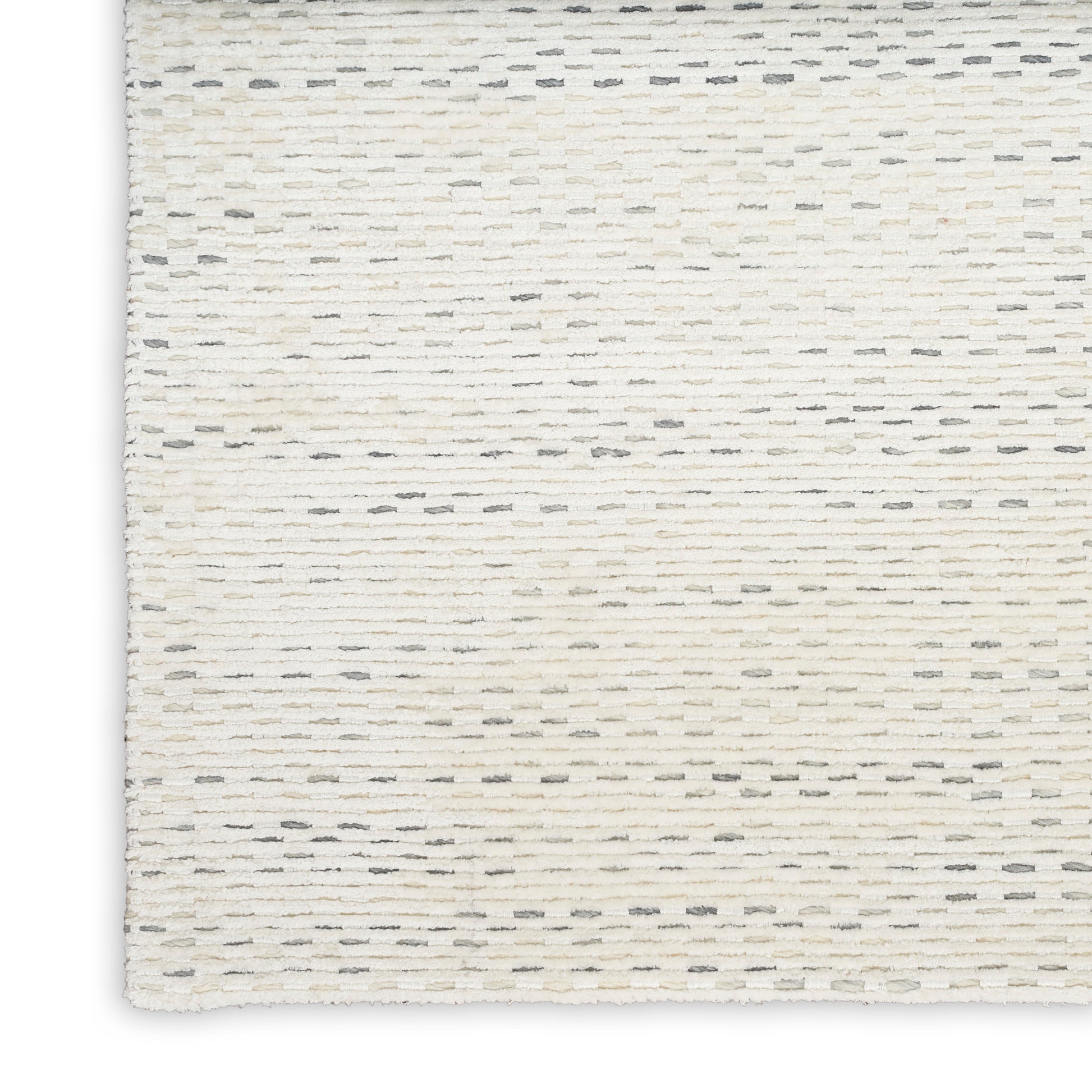 This modern ivory rug from the Calvin Klein Valley Collection adds a simple yet striking look to any space. The silky-smooth pile is interwoven with banded high-low yarns that add a subtle sense of depth. Handmade with wool and viscose fibers that add a captivating sheen.