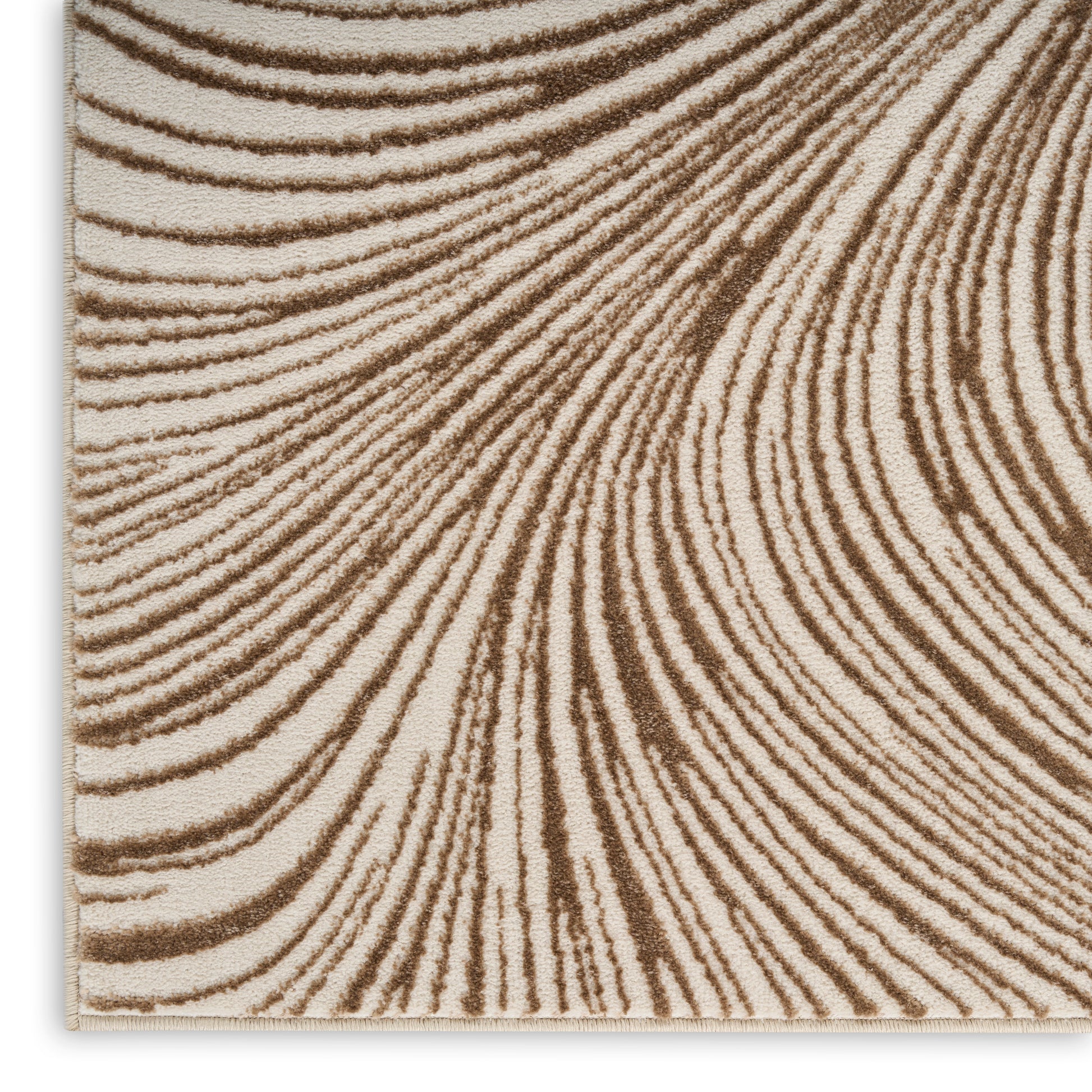 Introduce a touch of modern elegance to your home with this beige and brown abstract rug from the DKNY Central Park West collection. The swirling pattern creates a sense of flow that effortlessly ties your space together. Finished with a high-low weave and subtle sheen that adds movement and depth to any room.