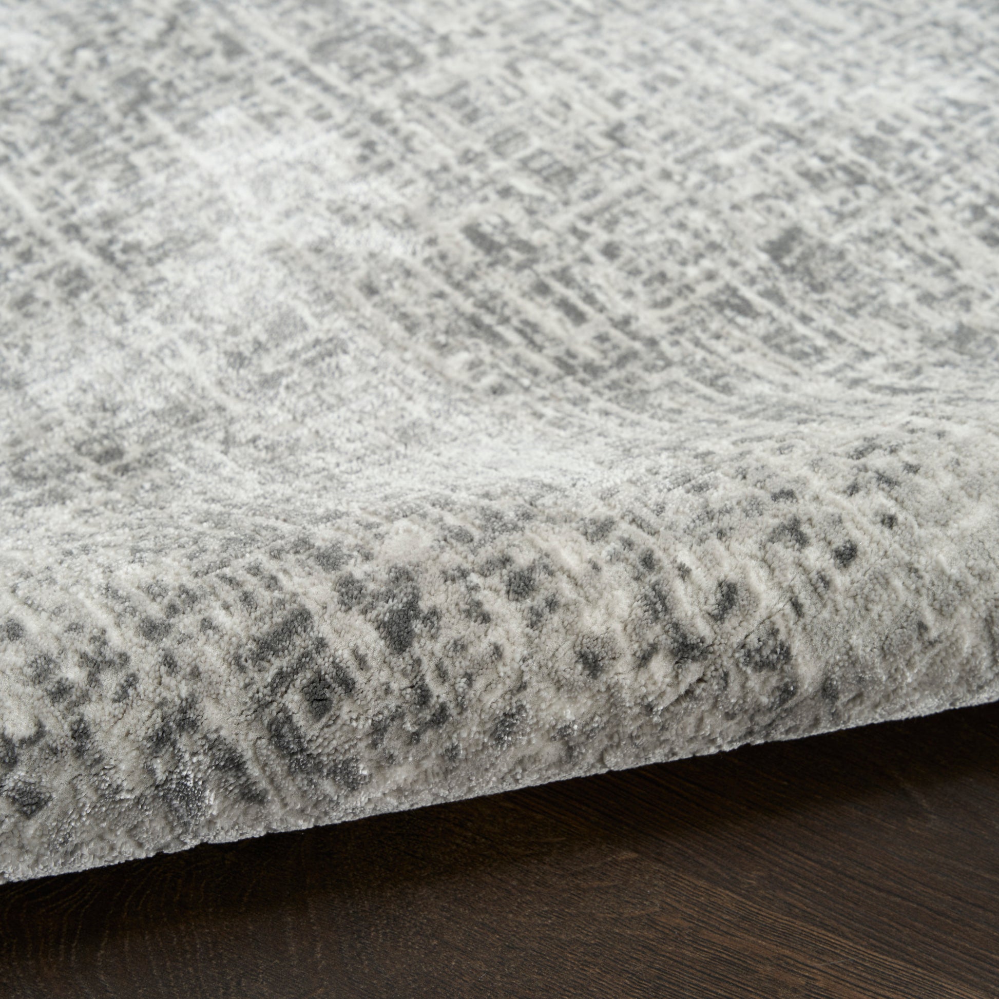 Elevate your space with the sleek and modern appeal of this light grey abstract rug from the DKNY Grand Street collection. The grid-like weave, inspired by bustling city blocks, features subtle tonal variations designed to draw the eye. Made from softly textured fibers finished with a silk-like sheen for added depth.