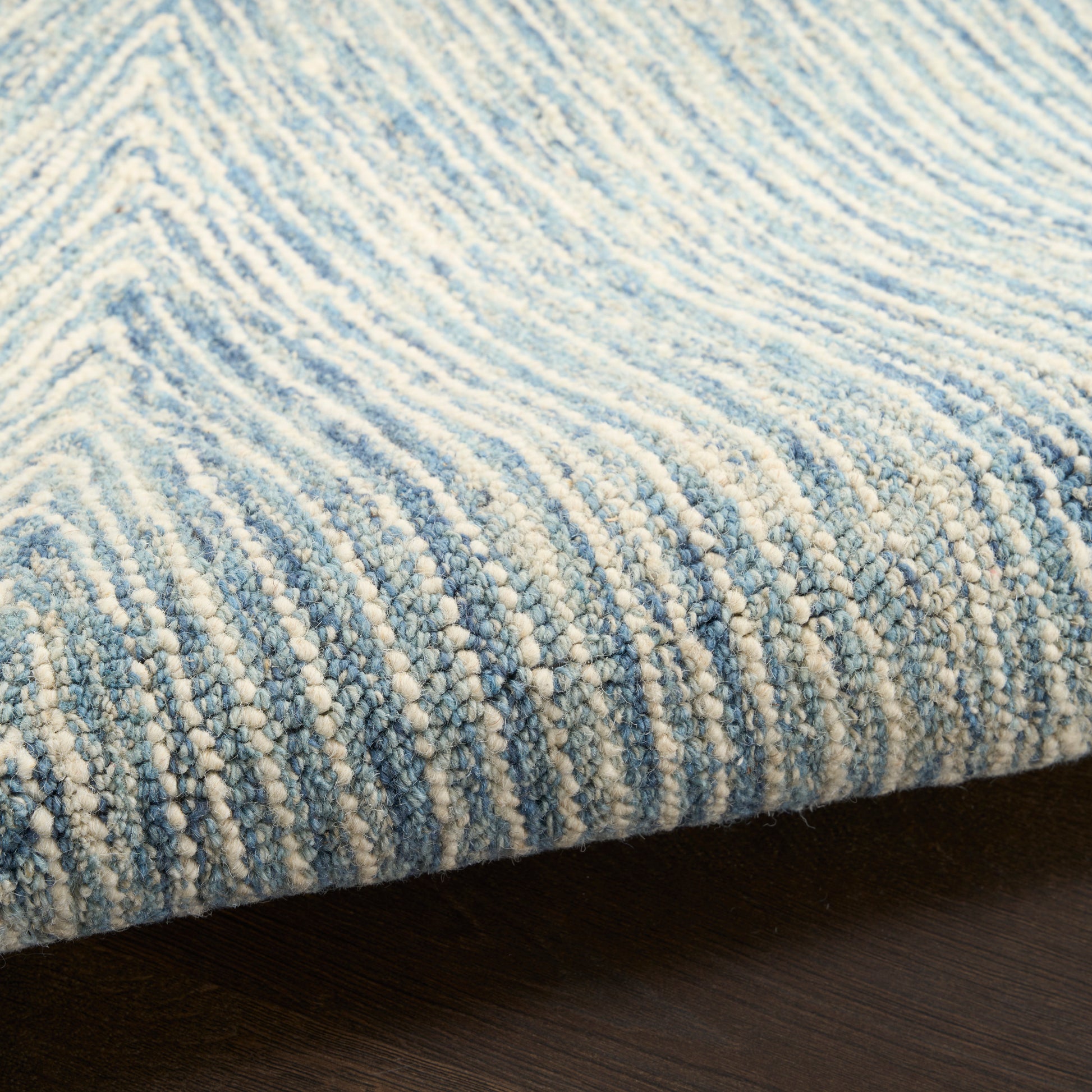 Elevate your space with the vibrant energy of this handmade ivory and blue rug from the DKNY Pure Angles collection. The densely woven surface, made from handspun and space-dyed wool, creates a dynamic focal point in any decor.