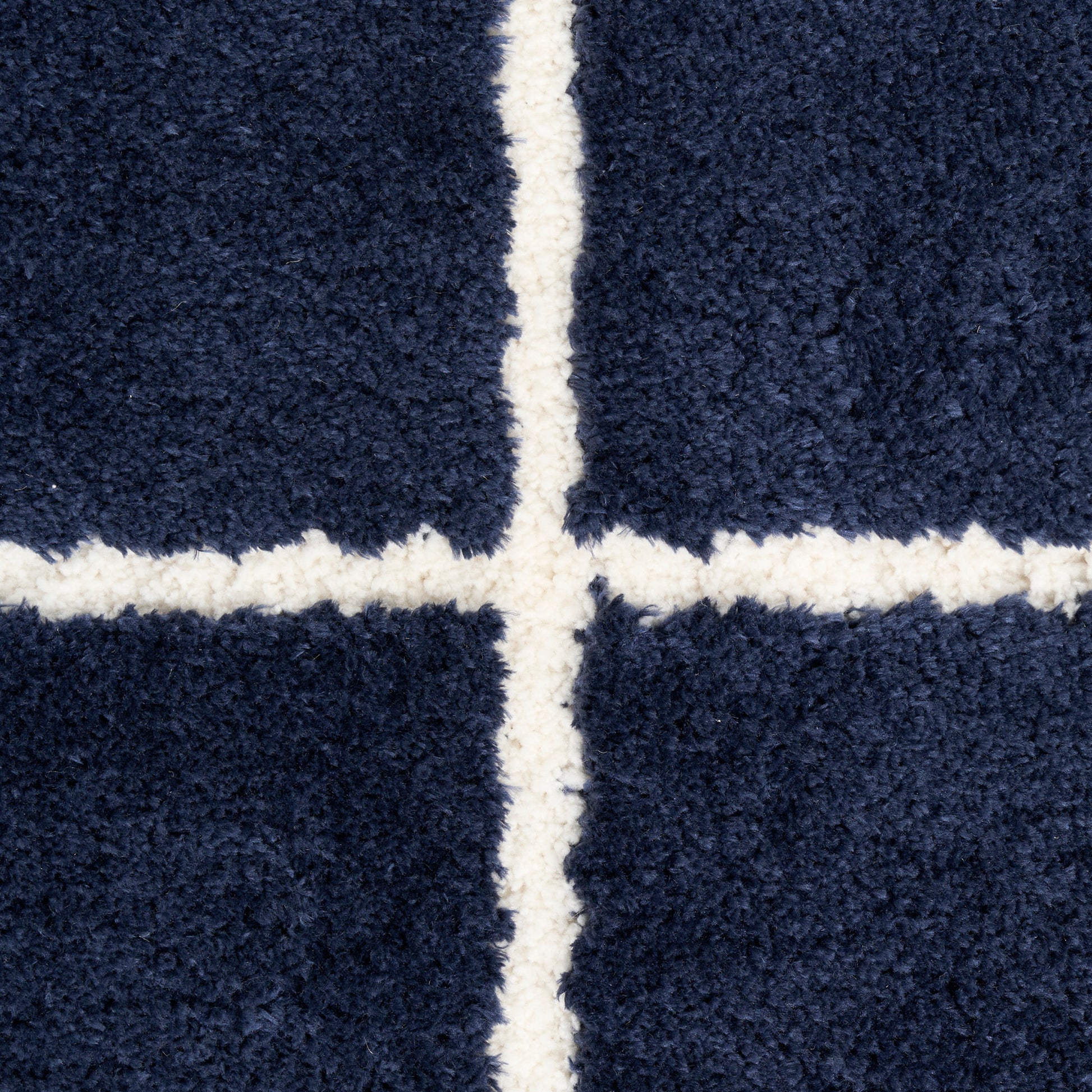 Equal parts cozy and refined, this navy and ivory shag rug from the DKNY West End Ave collection brings relaxed style to your space. The classic checkerboard pattern is enhanced with a dimensional high-low weave that has a luxurious texture.