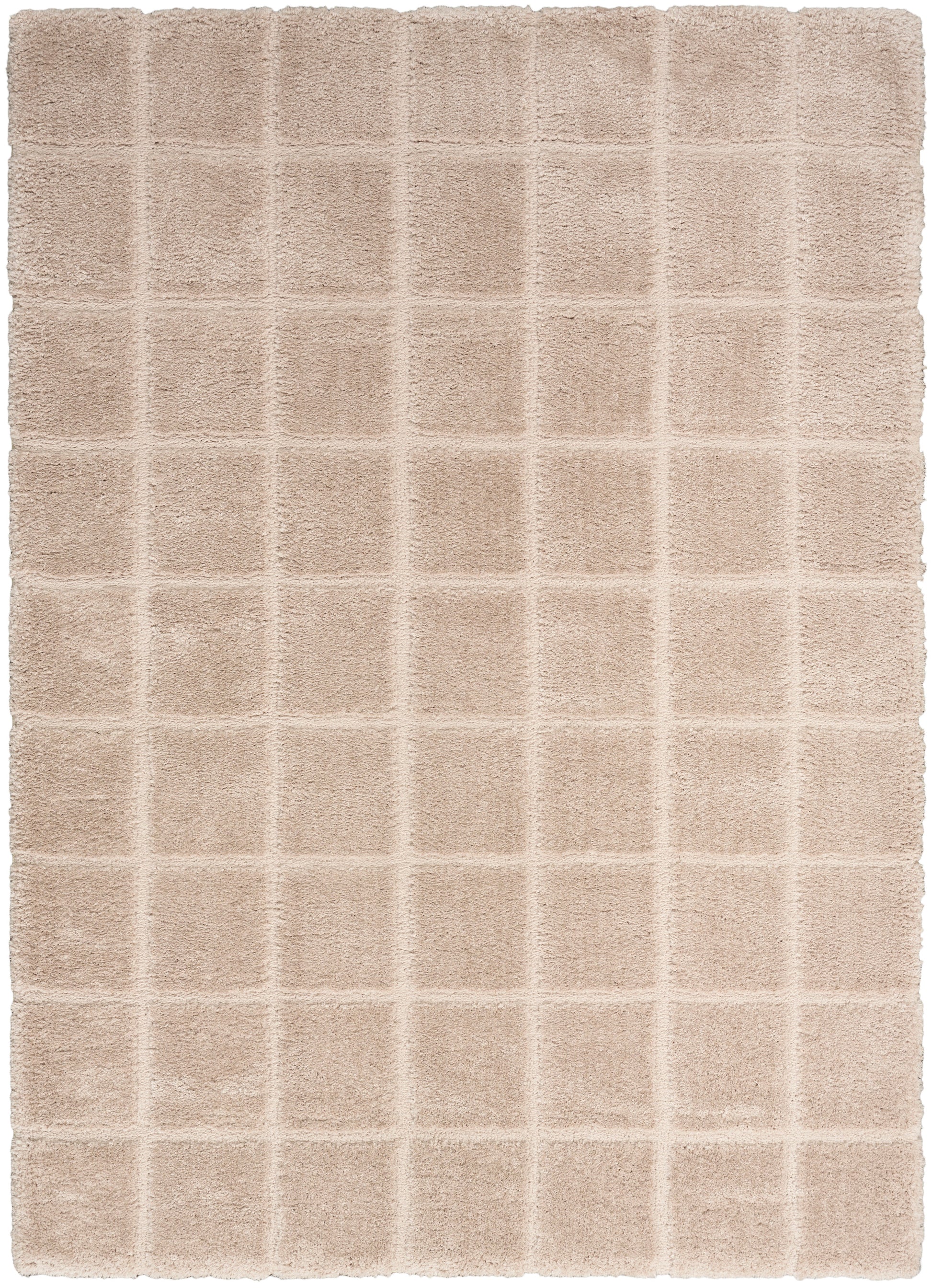 Equal parts cozy and refined, this beige shag rug from the DKNY West End Ave collection brings relaxed style to your space. The classic checkerboard pattern is enhanced with a dimensional high-low weave that has a luxurious texture.