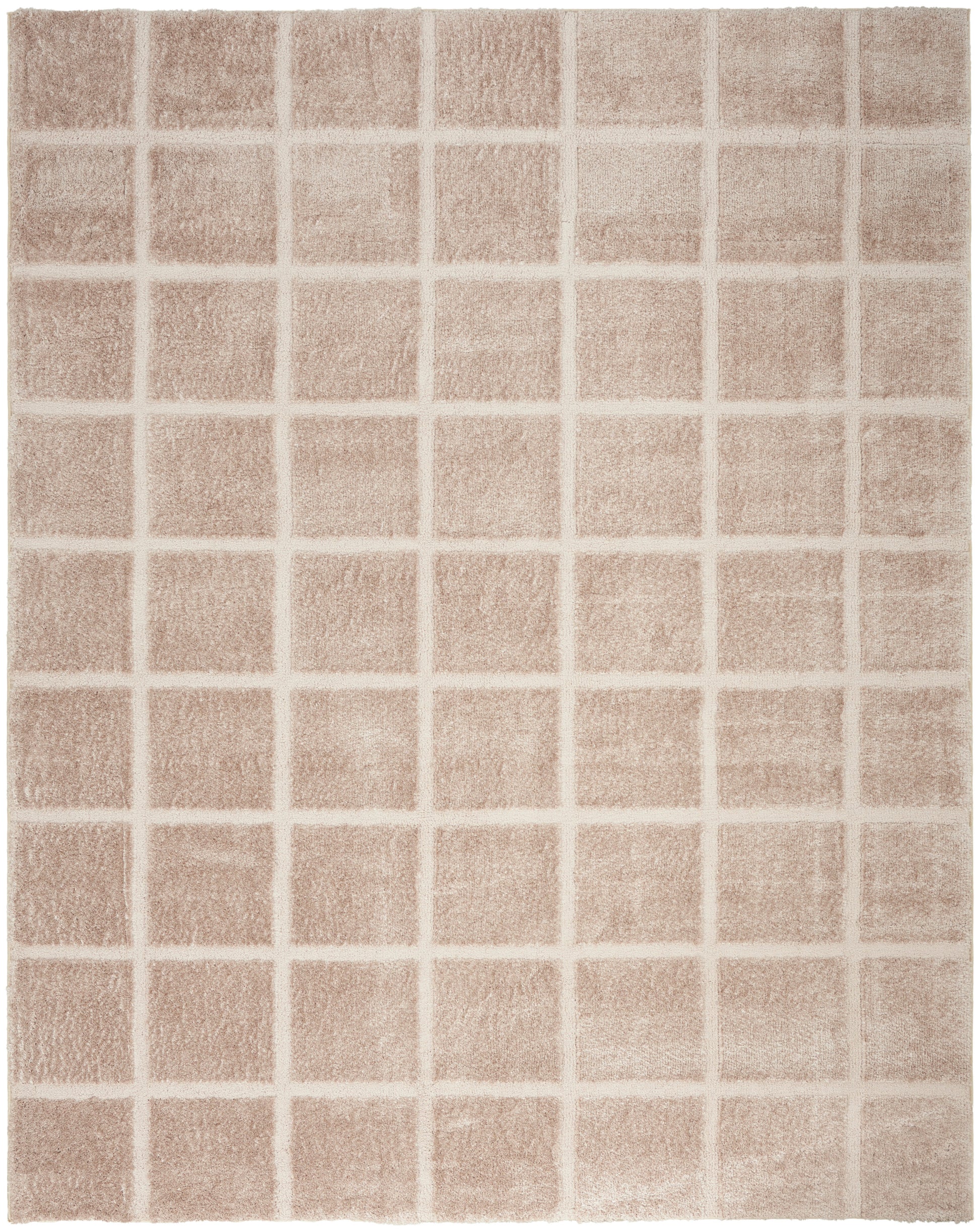 Equal parts cozy and refined, this beige shag rug from the DKNY West End Ave collection brings relaxed style to your space. The classic checkerboard pattern is enhanced with a dimensional high-low weave that has a luxurious texture.