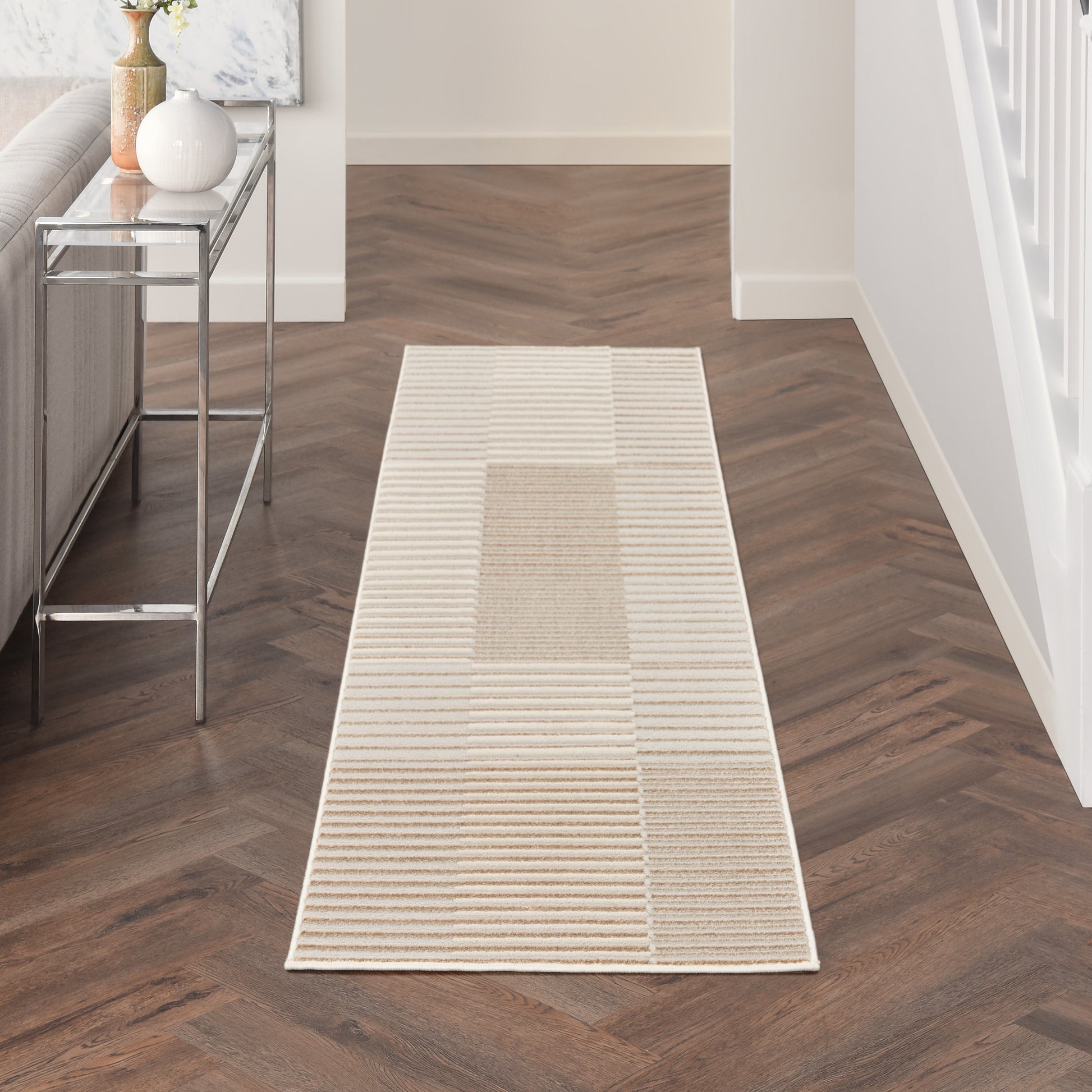 Inspire Me! Home Décor Brushstrokes 2'2" x 7'6" Beige Silver Modern Indoor Rug