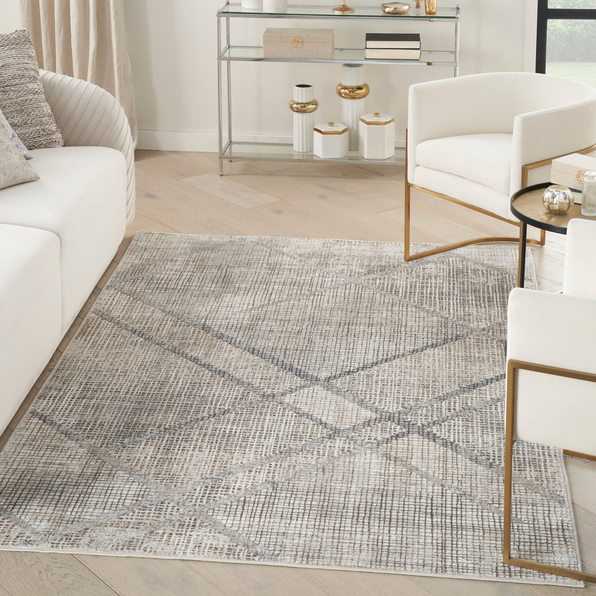 This abstract grey and mocha rug from the Inspire Me! Home Décor Iliana Collection features a chic, cross-linear pattern that adds extra soft texture and a glamorous sheen. The low-pile design is made of durable, low-maintenance polyester yarns – great for placement in your living room, dining room, bedroom, or hallway. This modern rug embodies livable luxury for any décor.