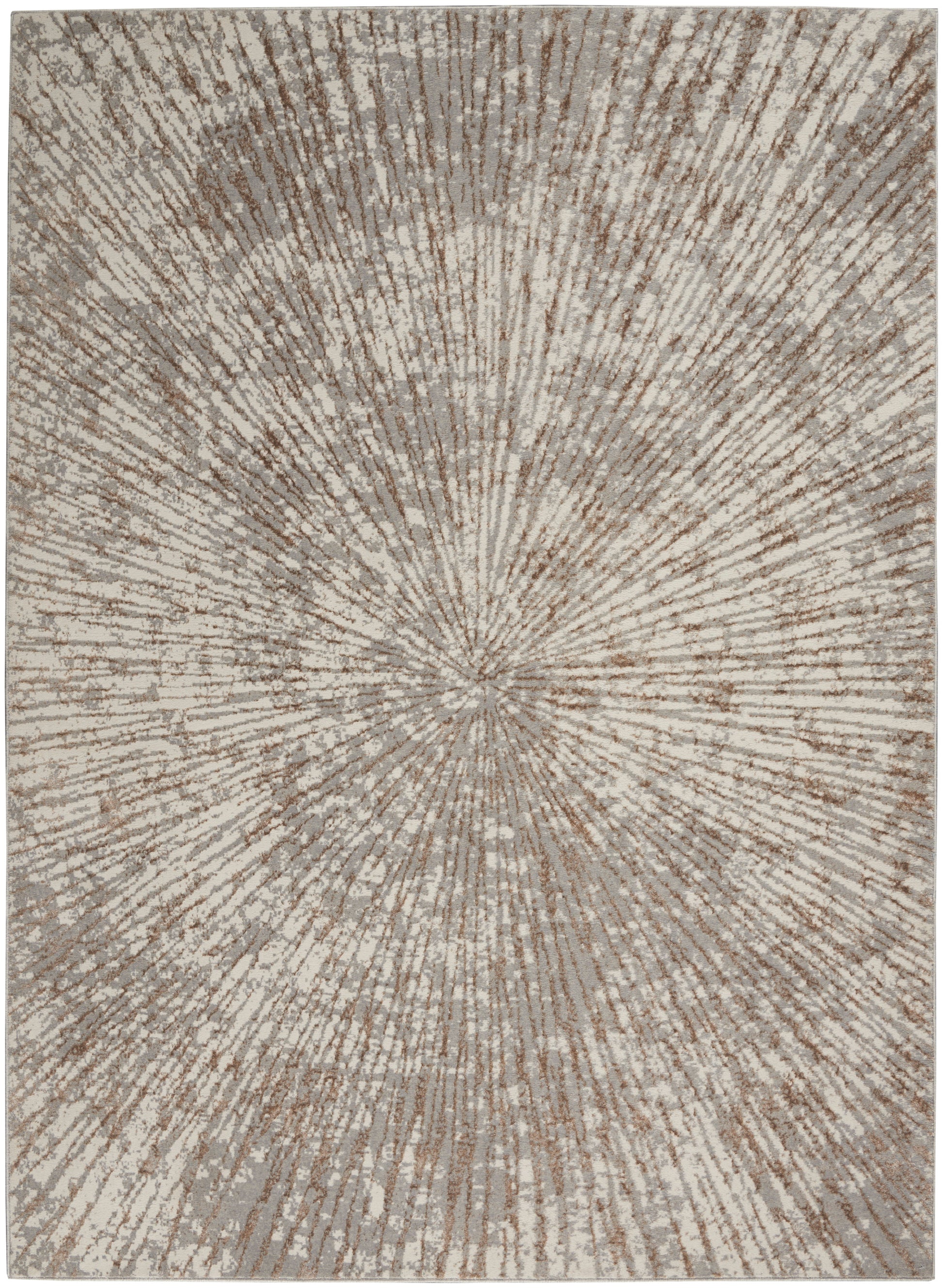 A cut pile creates an exciting starburst effect and marvelous texture in this modern rug from Inspire Me! Home Decor. Power-loomed from silken polyester fibers with gleaming metallic highlights, it is soft to the touch while offering the pleasure of low-shed, easy-clean performance. This subtly glamorous abstract design in lush gold and silvery grey is finished with a clean serged edge.