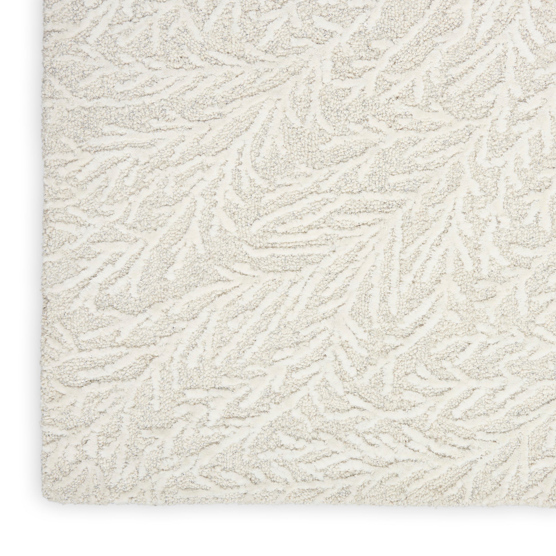 An elegantly understated addition to your décor, this abstract rug from the Michael Amini Star Collection by Nourison draws on the simple beauty of nature. A raised, radial pattern of fir branches in tone-on-tone ivory is enhanced by shimmering accents that stand out stunningly against its solid ground. Handmade from a blend of wool, lurex, and silk-like Luxcelle for delightful texture and lasting style.