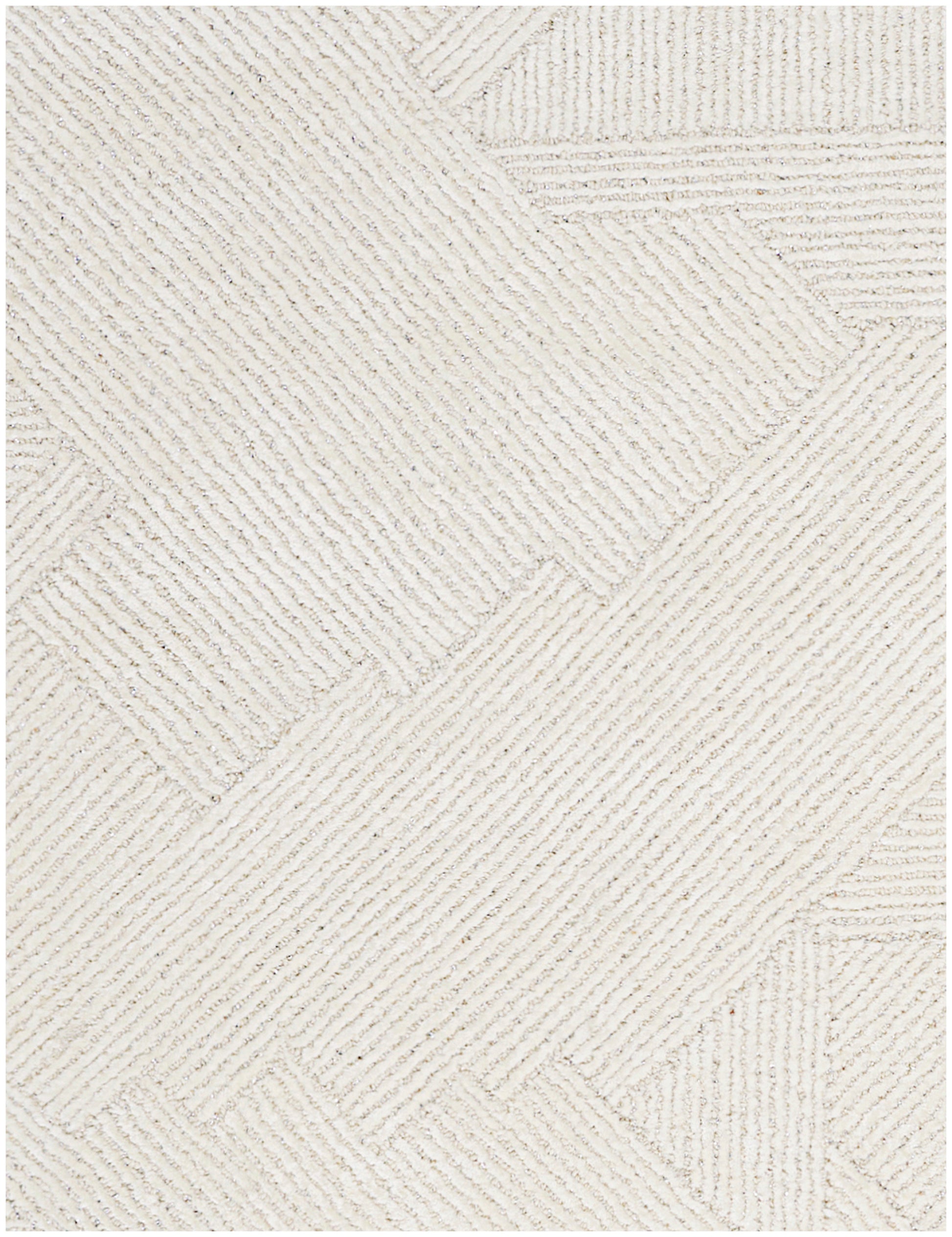 Crafted in bold abstract style, this modern rug from the Michael Amini Star Collection by Nourison is a mesmerizing addition to your home décor. This statement making design showcases an overlapping linear pattern in pale ivory, enhanced by shimmering accents that shift beautifully with changes in light. Handmade in high-low style from a luxurious blend of wool, lurex, and silk-like Luxcelle fibers that feel wonderfully soft underfoot.