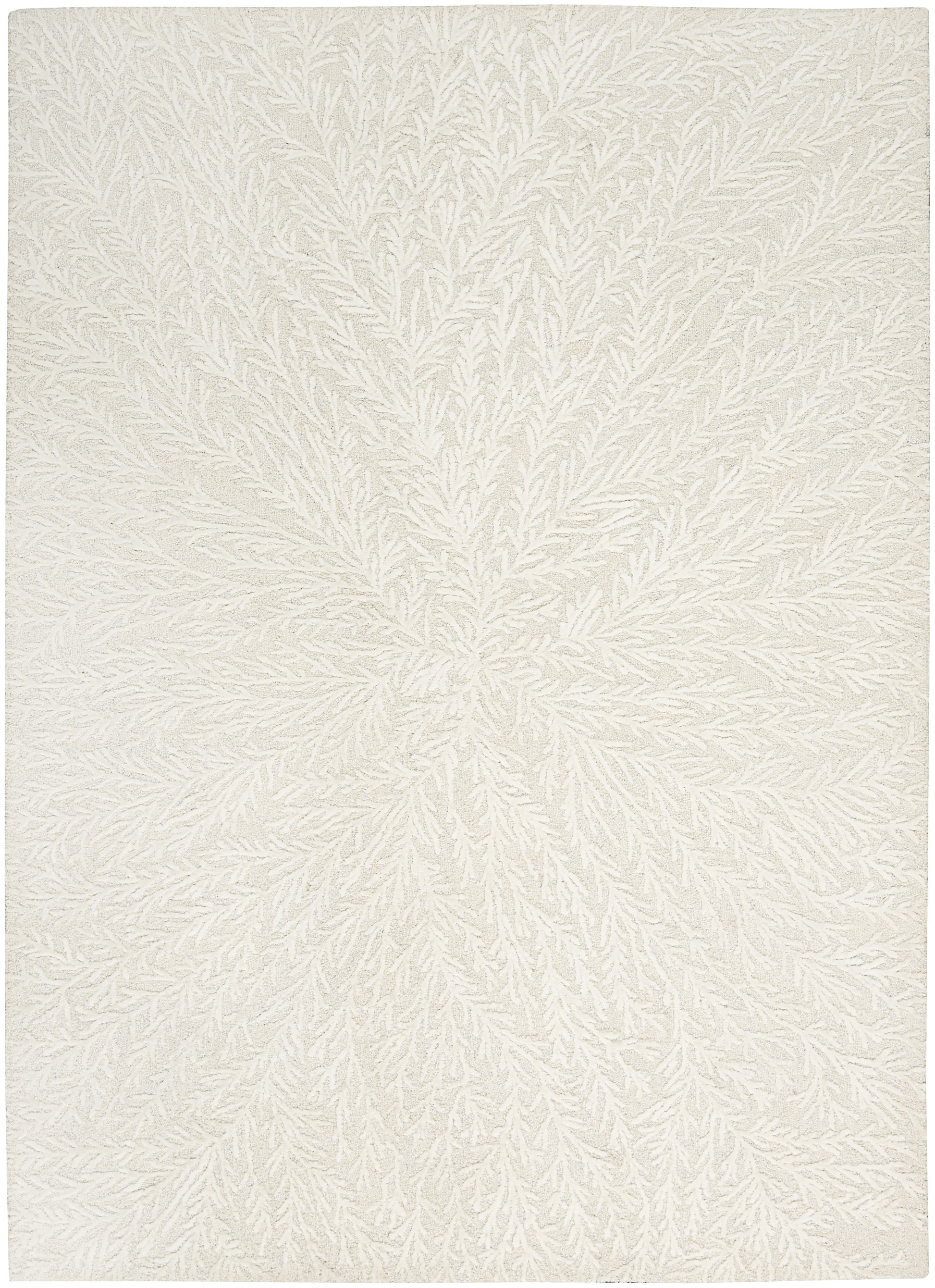 An elegantly understated addition to your décor, this abstract rug from the Michael Amini Star Collection by Nourison draws on the simple beauty of nature. A raised, radial pattern of fir branches in tone-on-tone ivory is enhanced by shimmering accents that stand out stunningly against its solid ground. Handmade from a blend of wool, lurex, and silk-like Luxcelle for delightful texture and lasting style.