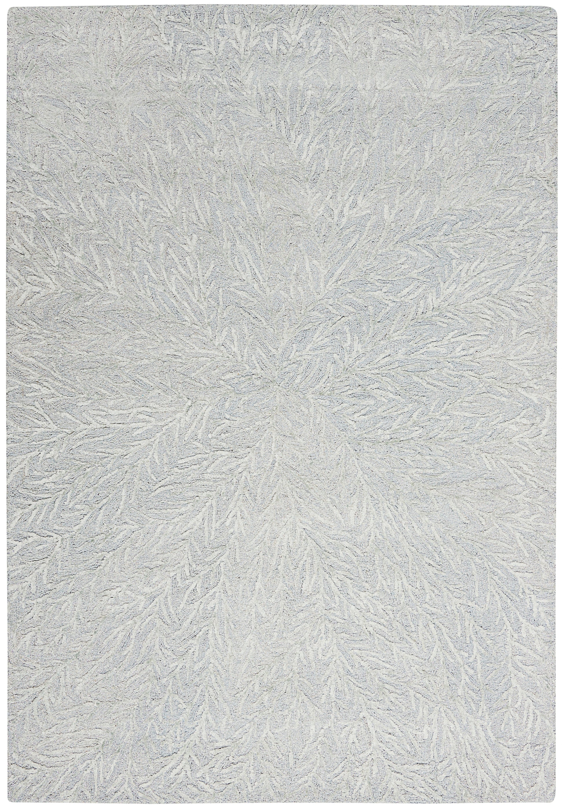 An elegantly understated addition to your décor, this abstract rug from the Michael Amini Star Collection by Nourison draws on the simple beauty of nature. A raised, radial pattern of fir branches in tone-on-tone blue is enhanced by shimmering accents that stand out stunningly against its solid ground. Handmade from a blend of wool, lurex, and silk-like Luxcelle for delightful texture and lasting style.