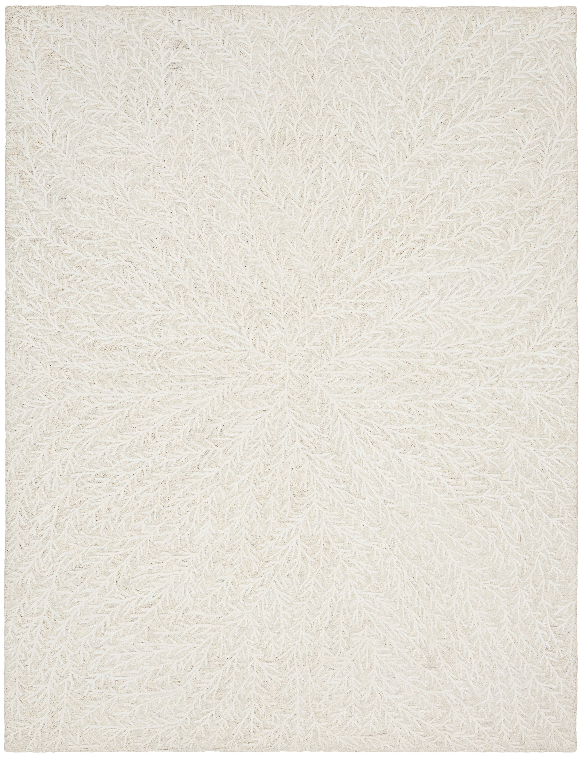 An elegantly understated addition to your décor, this abstract rug from the Michael Amini Star Collection by Nourison draws on the simple beauty of nature. A raised, radial pattern of fir branches in tone-on-tone ivory is enhanced by shimmering accents that stand out stunningly against its solid ground. Handmade from a blend of wool, lurex, and silk-like Luxcelle for delightful texture and lasting style.
