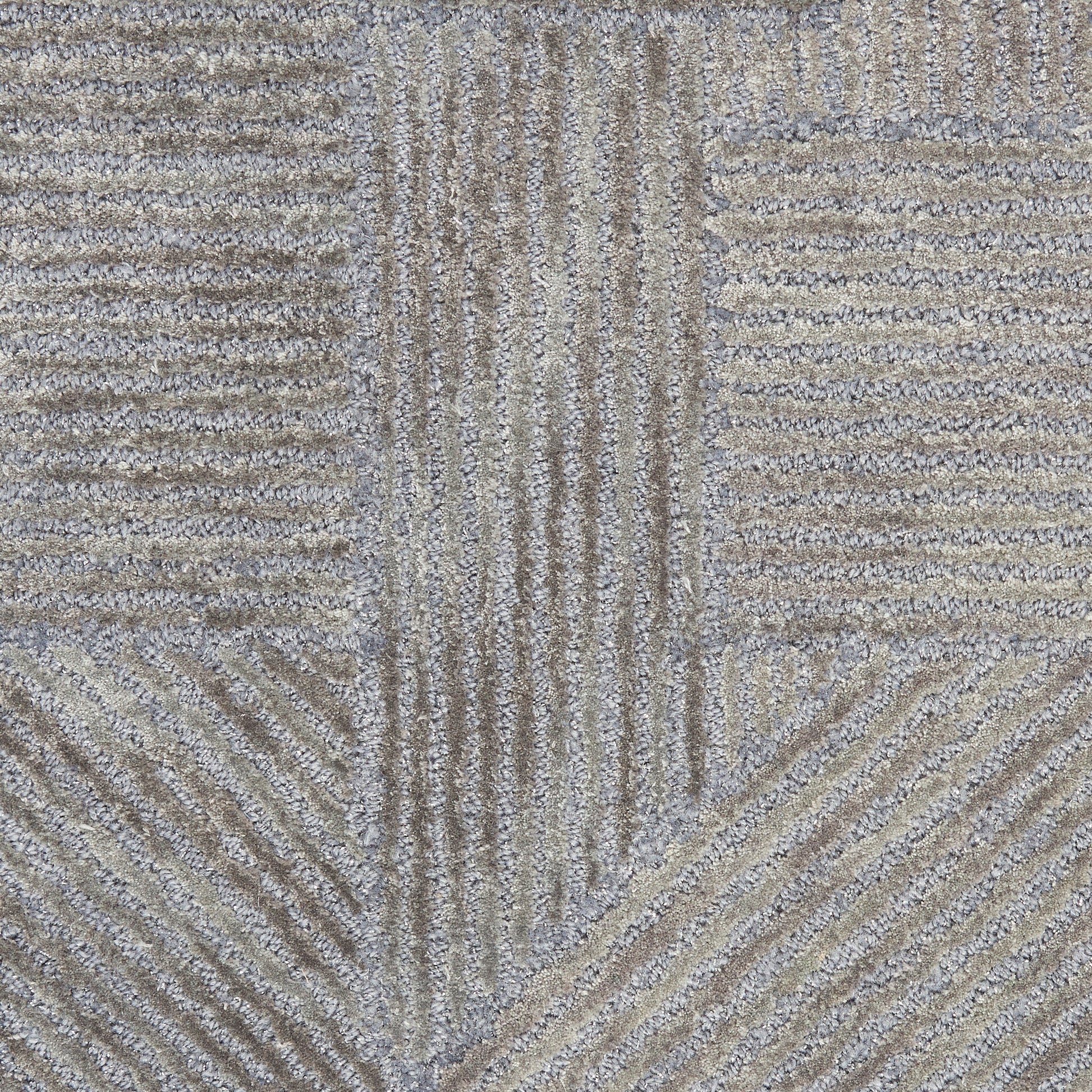 Crafted in bold abstract style, this modern rug from the Michael Amini Star Collection by Nourison is a mesmerizing addition to your home décor. This statement making design showcases an overlapping linear pattern in slate grey, enhanced by shimmering accents that shift beautifully with changes in light. Handmade in high-low style from a luxurious blend of wool, lurex, and silk-like Luxcelle fibers that feel wonderfully soft underfoot.