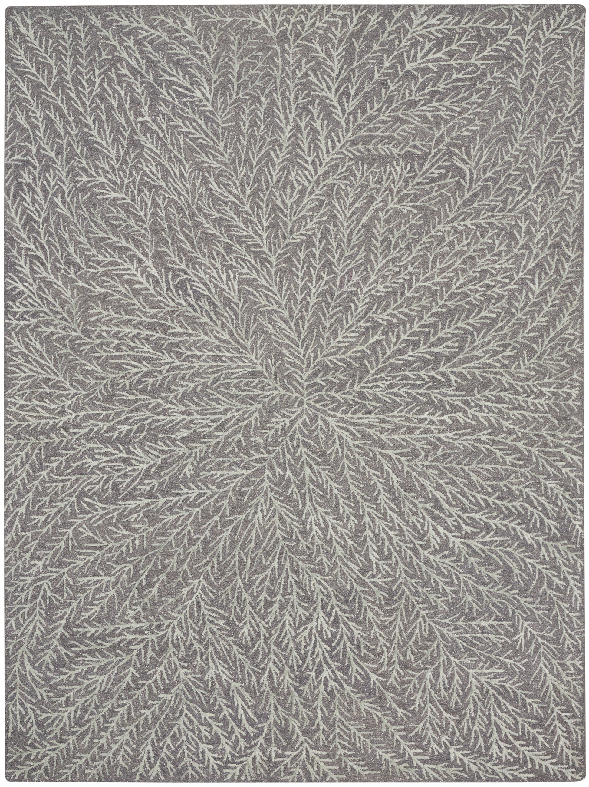 An elegantly understated addition to your décor, this abstract rug from the Michael Amini Star Collection by Nourison draws on the simple beauty of nature. A raised, radial pattern of fir branches in shades of slate and teal blue is enhanced by shimmering accents that stand out stunningly against its solid ground. Handmade from a blend of wool, lurex, and silk-like Luxcelle for delightful texture and lasting style.