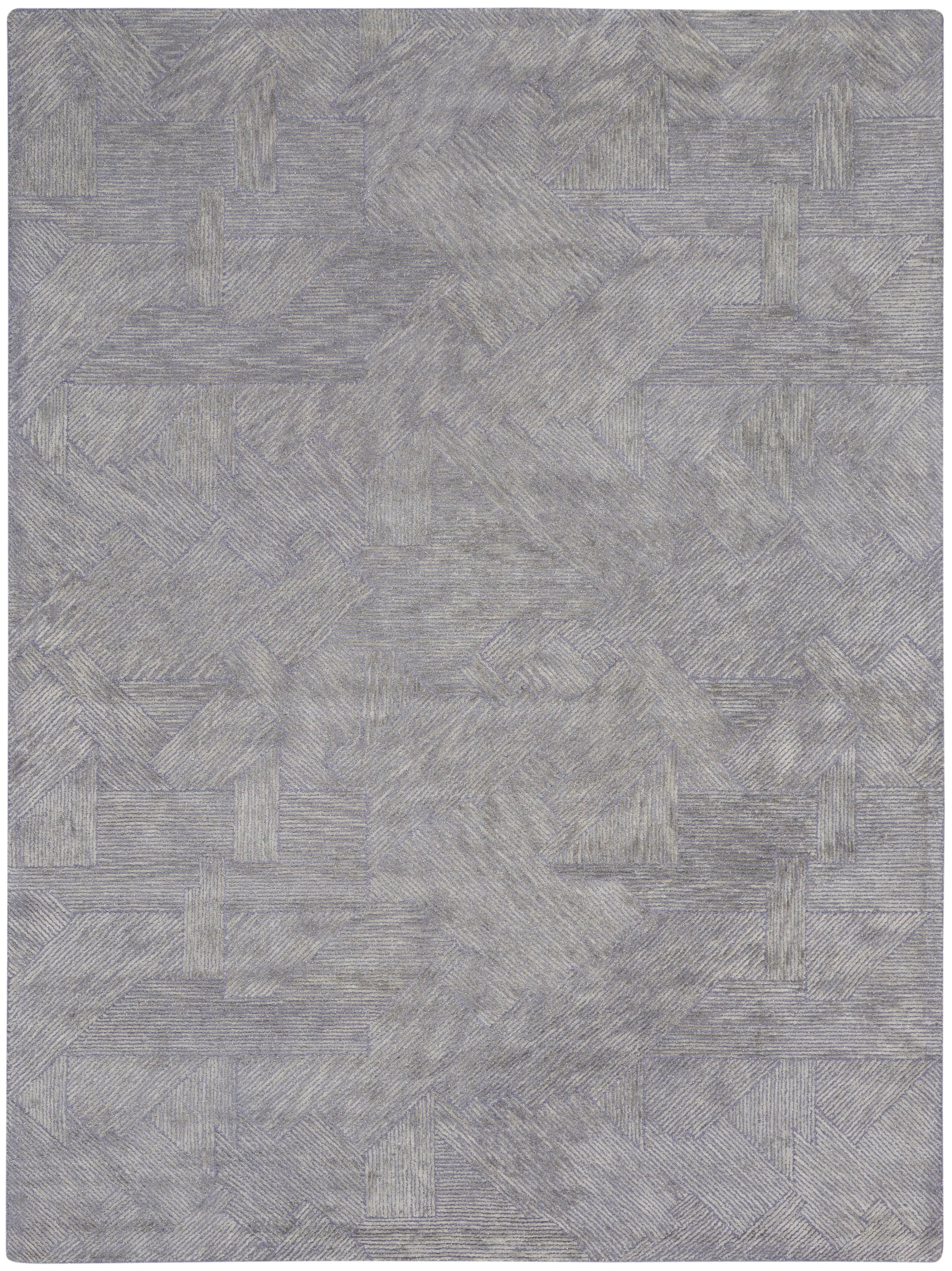 Crafted in bold abstract style, this modern rug from the Michael Amini Star Collection by Nourison is a mesmerizing addition to your home décor. This statement making design showcases an overlapping linear pattern in slate grey, enhanced by shimmering accents that shift beautifully with changes in light. Handmade in high-low style from a luxurious blend of wool, lurex, and silk-like Luxcelle fibers that feel wonderfully soft underfoot.