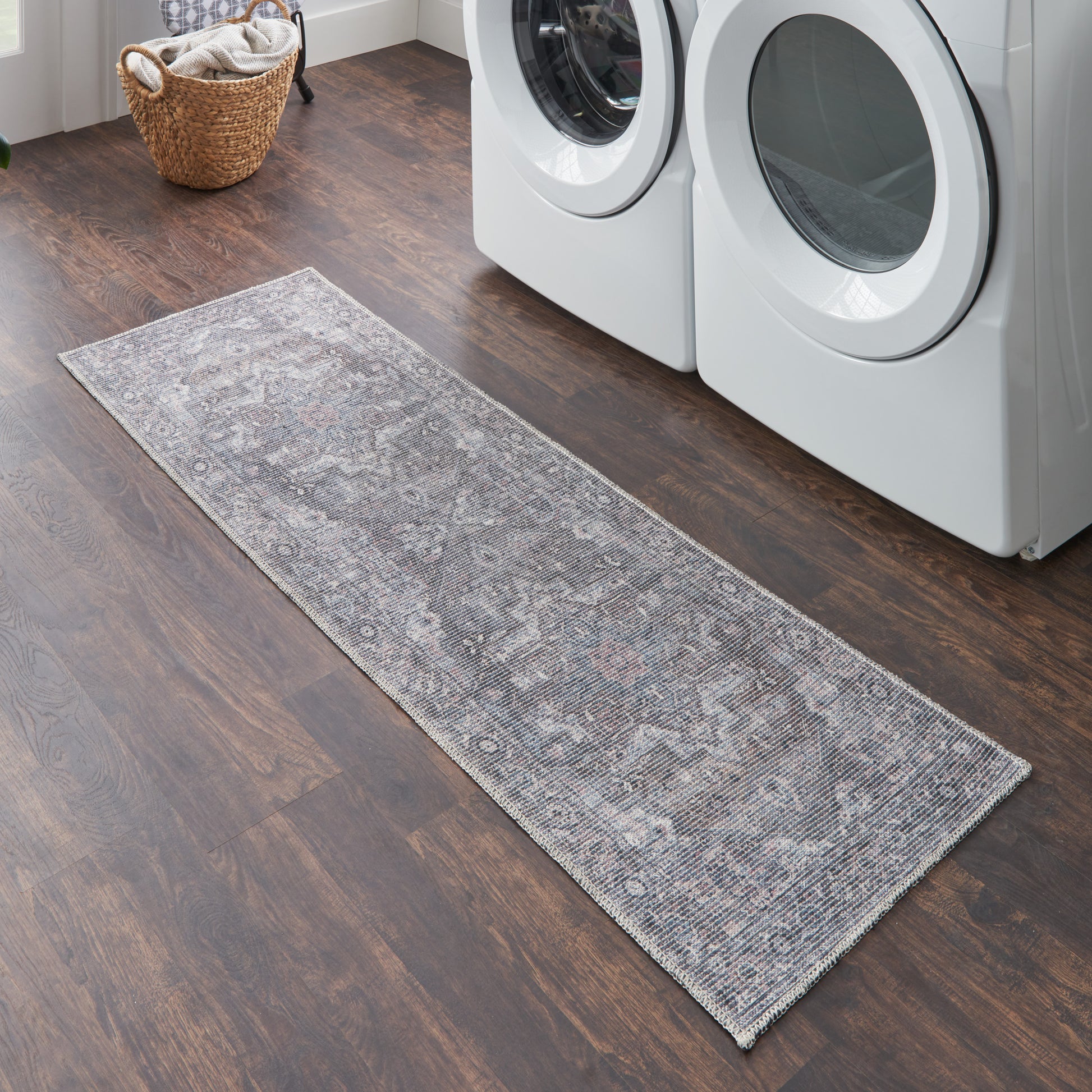 Nicole Curtis Machine Washable Series 1 2'2" x 8' Grey Vintage Indoor Rug
