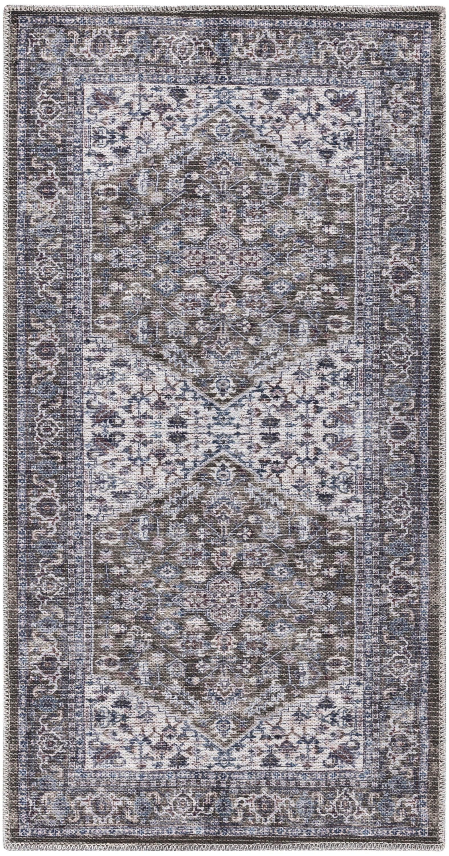 Nicole Curtis Machine Washable Series 1 3' x 5' Olive Ivory Vintage Indoor Rug