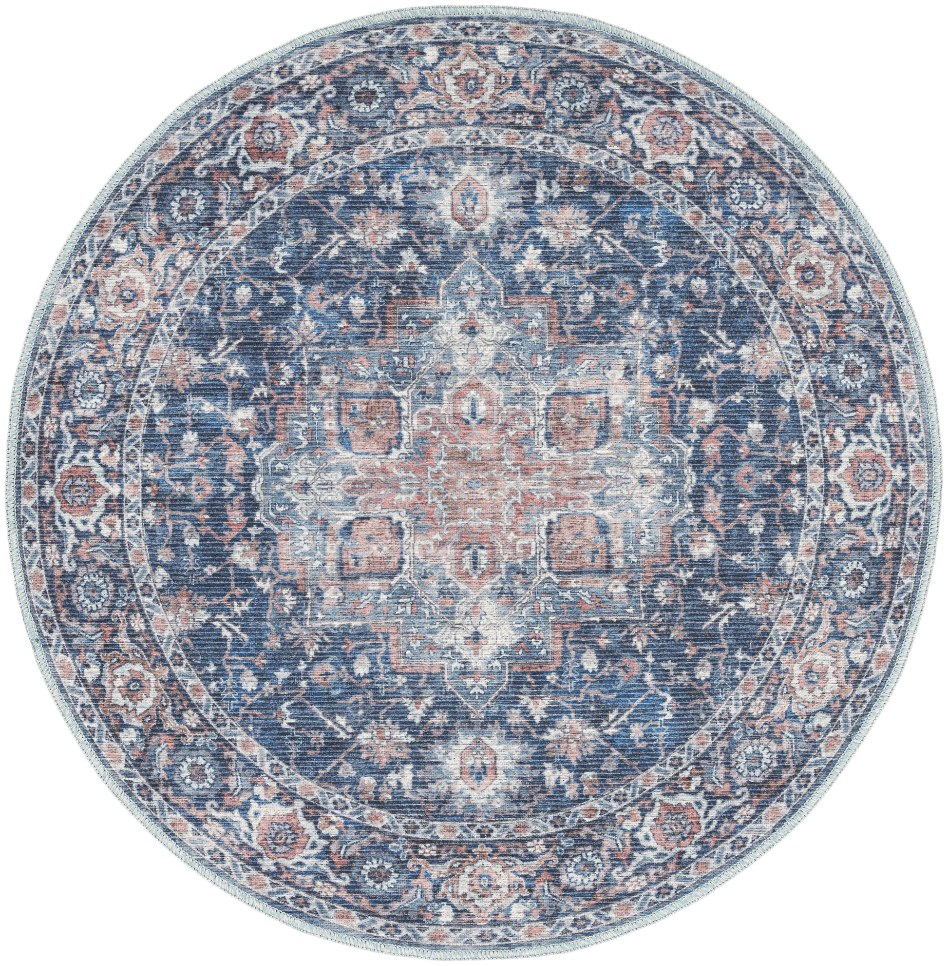 Nicole Curtis Machine Washable Series 1 4' x Round Ivory Navy Vintage Indoor Rug