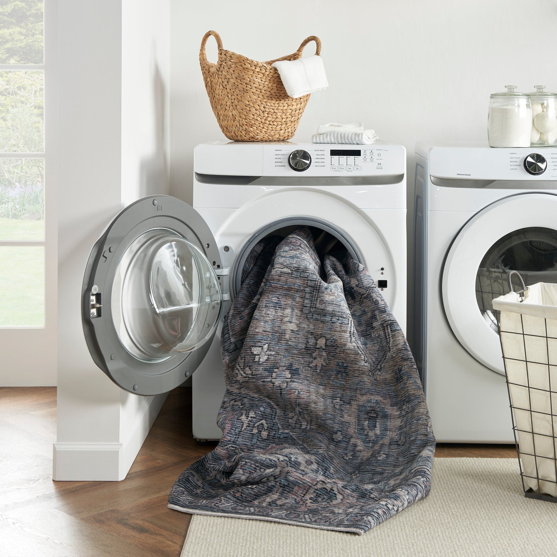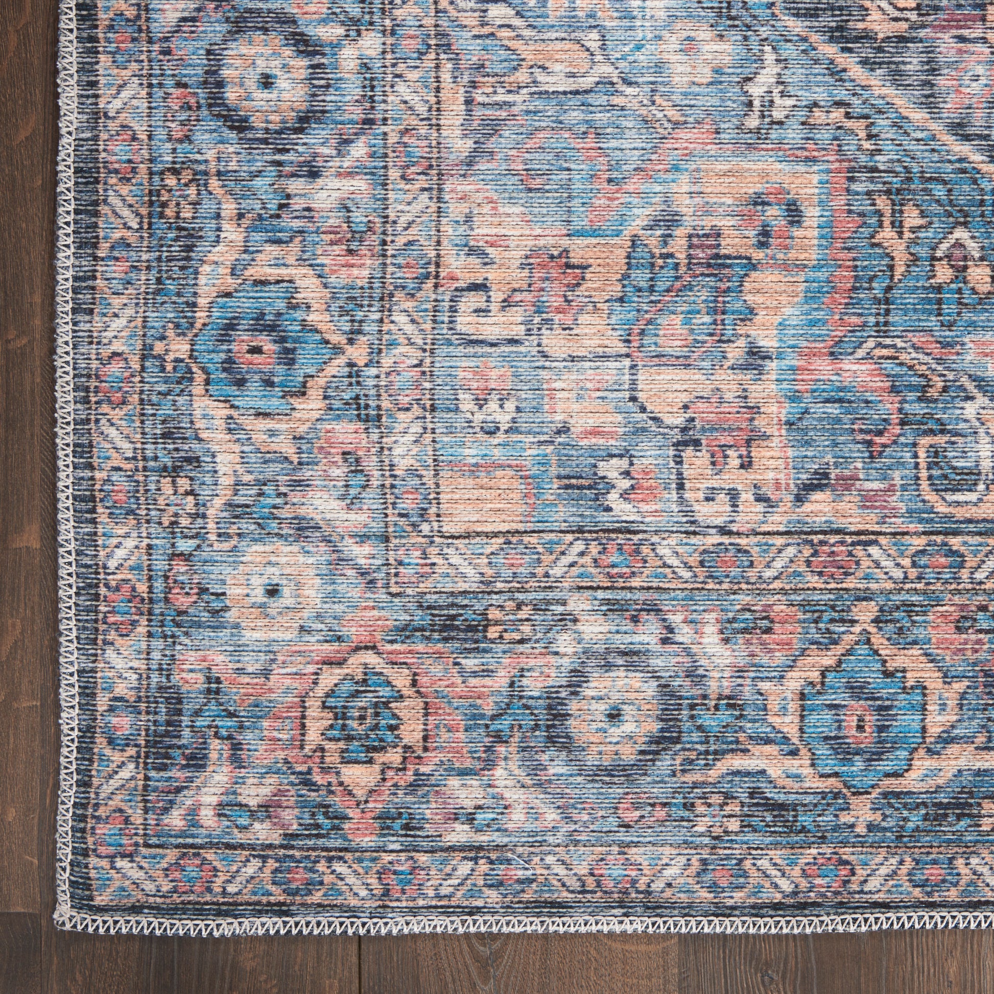 In a faithful nod to timeless Persian artistry, this boho rug from the Nicole Curtis Series 1 Washable Rug Collection features an intricately printed floral medallion design in blue, beige, and pink multicolor. A modern heirloom for your home in a wonderfully soft blend of cotton and chenille, it’s finished with intentional distressing for that true vintage feel. This lightweight, flat woven rug is machine-washable and fits easily under furniture and near doorways.